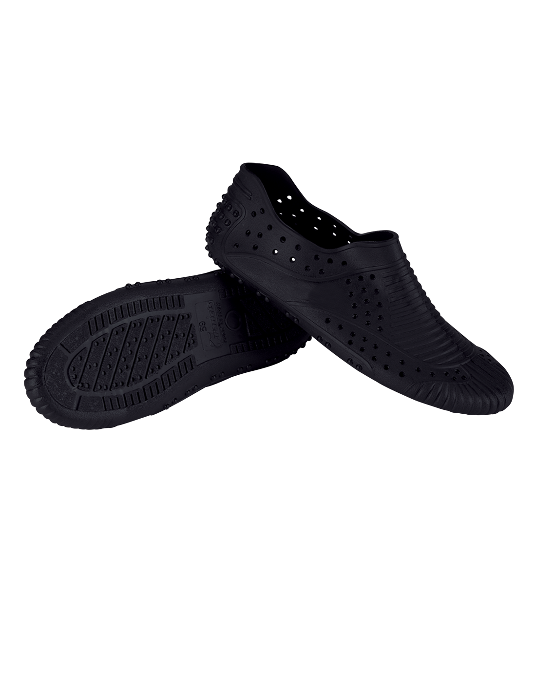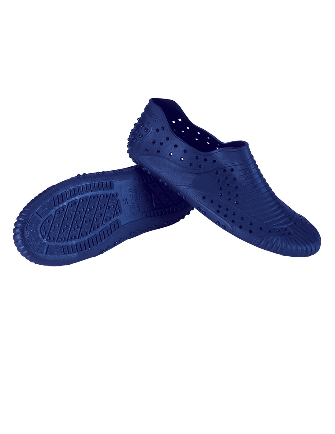 Weiche, hygienische PVC-Schuhe, ideal für Pool und Wassergymnastik. Auch perfekt für den Strand. Perforiertes Gummi sorgt für Belüftung und verhindert Wasseransammlungen. Verschiedene Farben. Erhältlich in den Größen 28 bis 45.