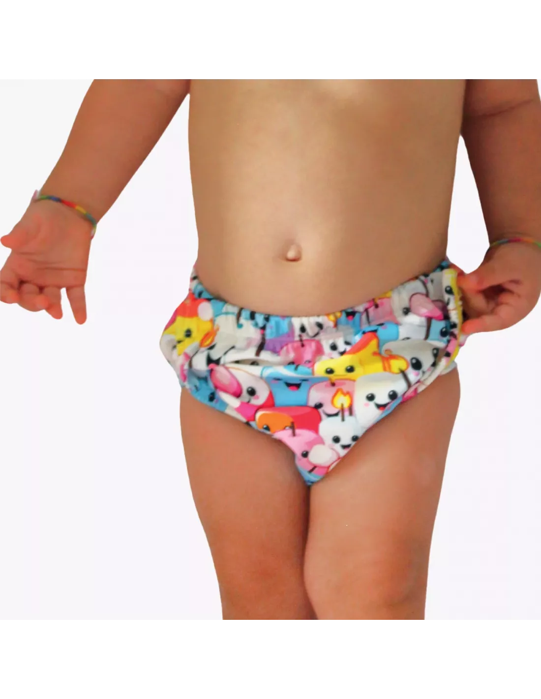 Baby HUGS ist ein verstellbarer Badeanzug mit Knöpfen, erhältlich in zwei Größen (6–18 Monate und 18–30 Monate). Praktisch, sicher und mit einem niedlichen Marshmallow- Print versehen, begleitet er die Kleinen auf ihren ersten Abenteuern im Wasser.