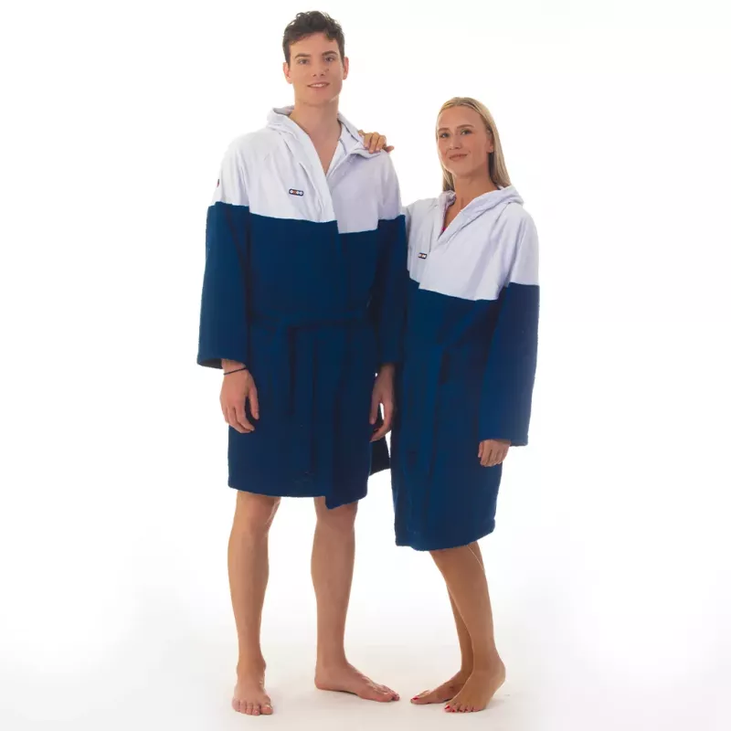 GREYTEXTURE ist ein hochwertiger Mikrofaser-Bademantel, der schnell trocknet und außergewöhnlich weich ist. Er ist in Blau und Weiß mit grauer Struktur erhältlich und verfügt über eine verstellbare Kapuze und einen verstellbaren Bund. Fünf verschiedene Größen garantieren die perfekte Passform.