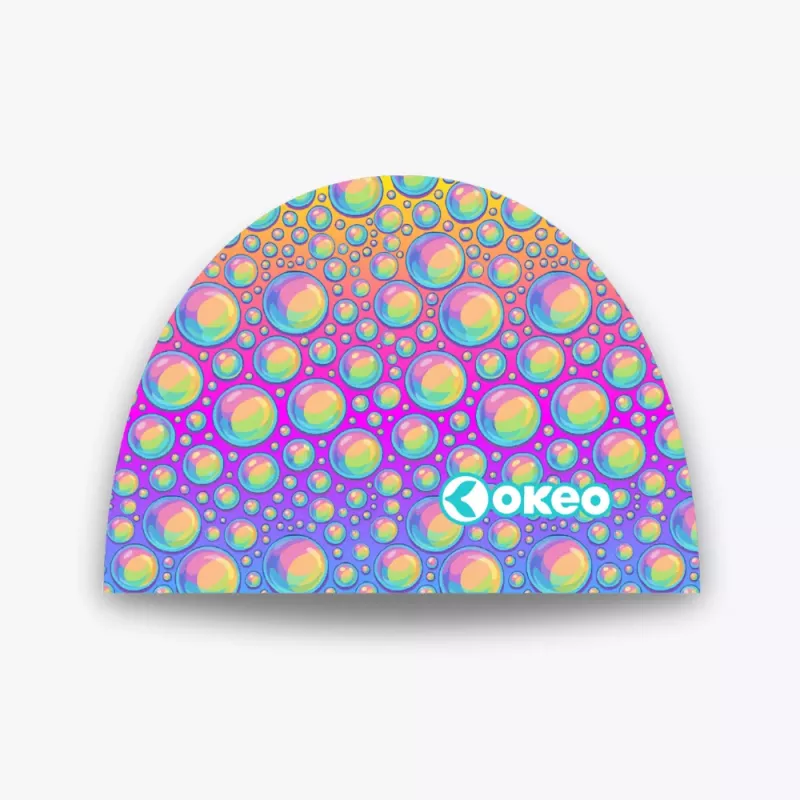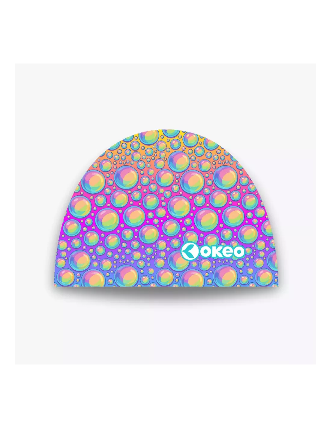 Das farbenfrohe Blasenmuster macht diese Badekappe lebendig und fröhlich – ideal, um kleine Schwimmer stilvoll zum Pool oder Strand zu begleiten.