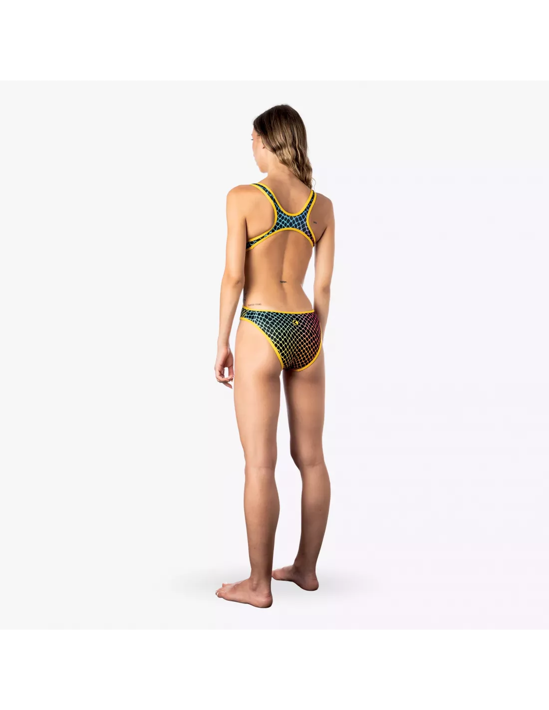 Der CADIZ- Badeanzug wurde für alle entwickelt, die im Wasser Wert auf Leistung, Langlebigkeit und Komfort legen. Sein mehrfarbiges Muster mit kontrastierendem gelbem Besatz vereint sportliches Design mit guter Sichtbarkeit im Pool.