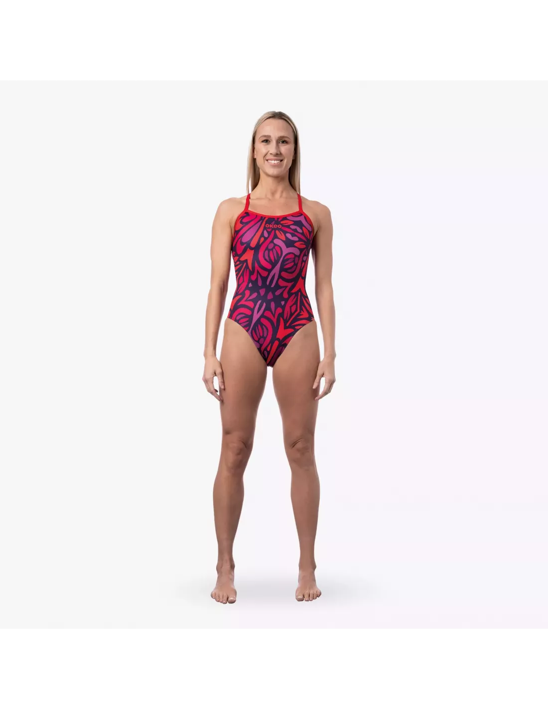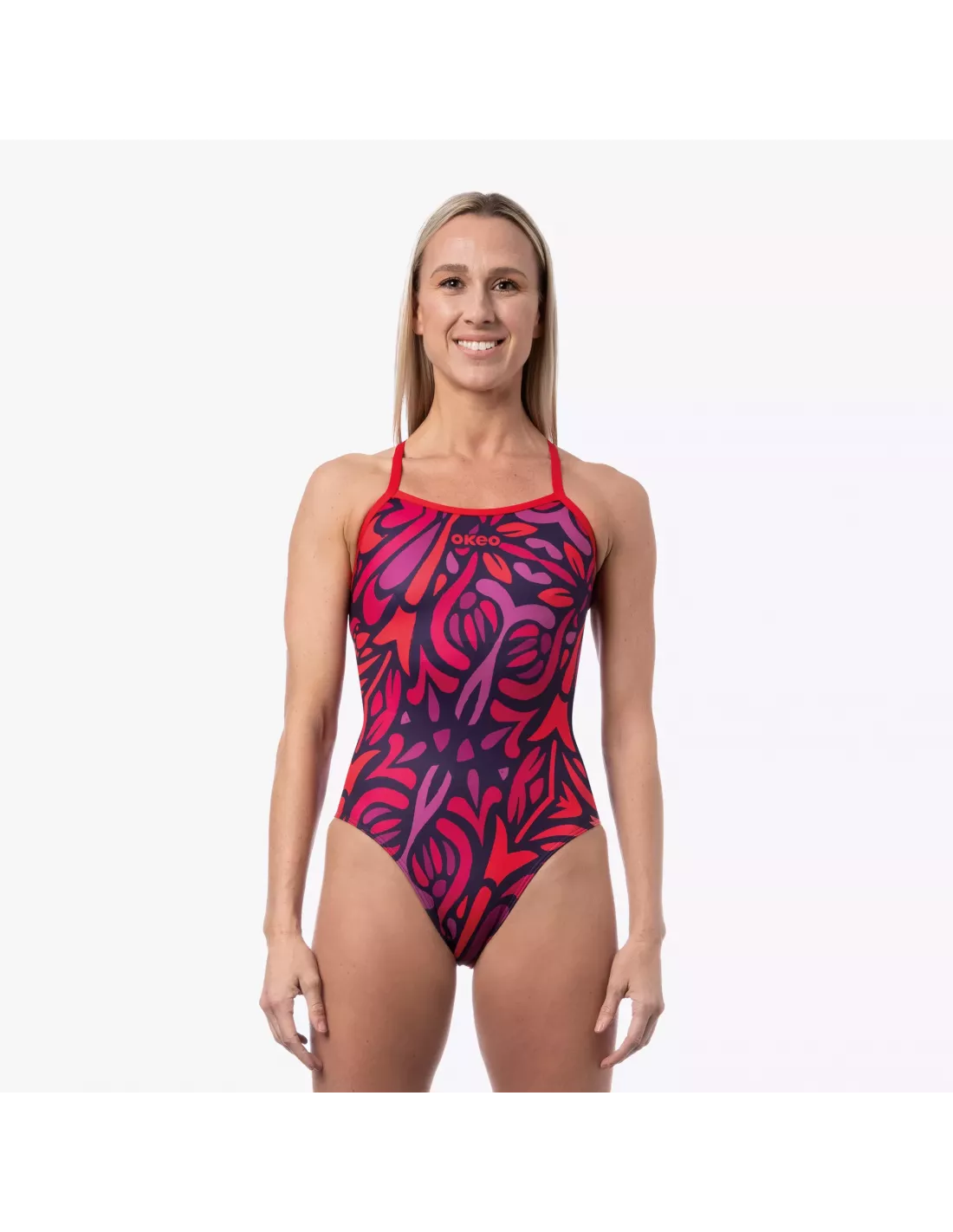 Der DALIA FUN&FIT Badeanzug für Damen vereint Stil und Komfort mit optimaler Unterstützung der Brust, einem Innenfutter und chlorbeständigem X-Play-Material. Das leuchtend rote Muster sorgt für einen auffälligen Look – perfekt für Pool und Workout.