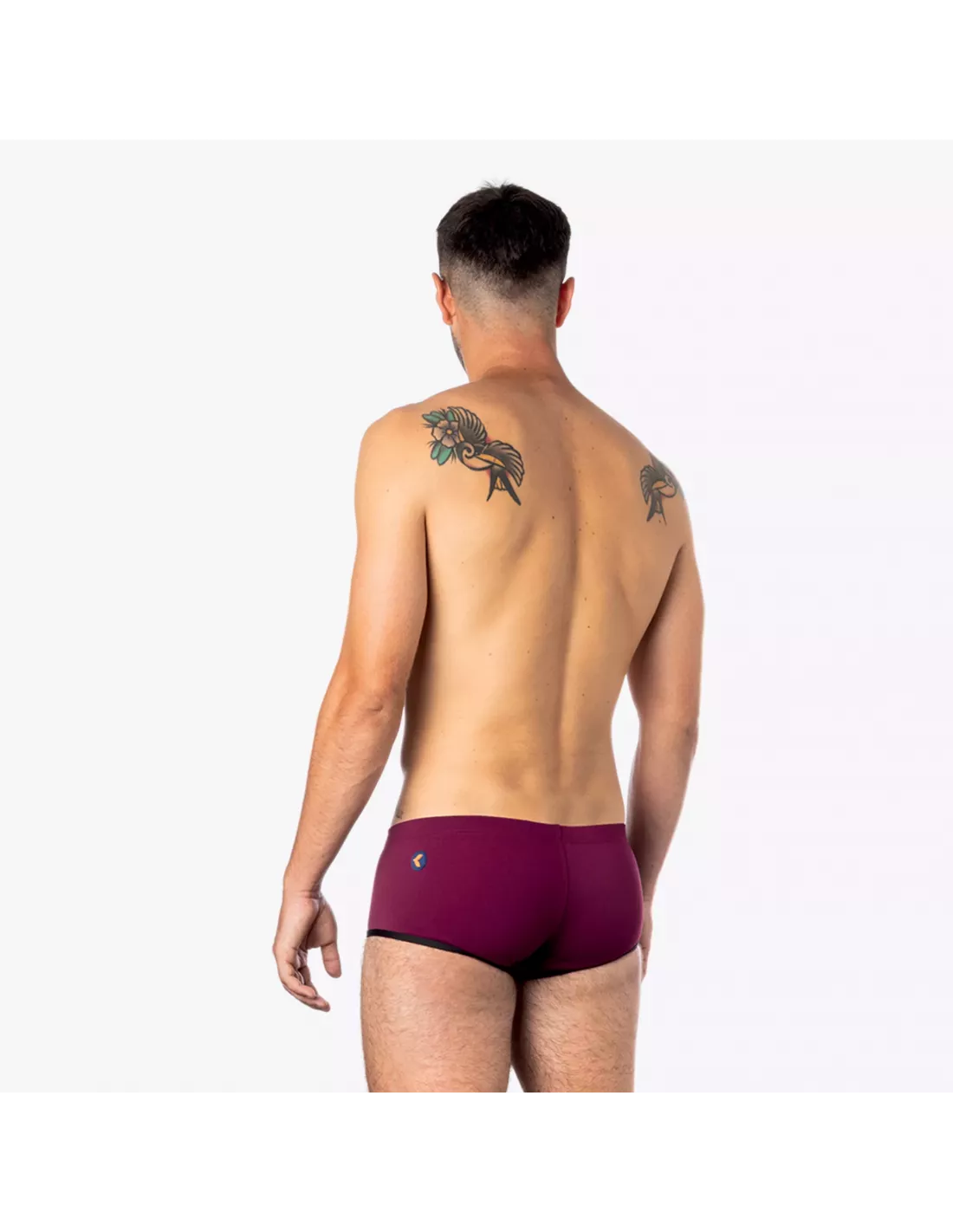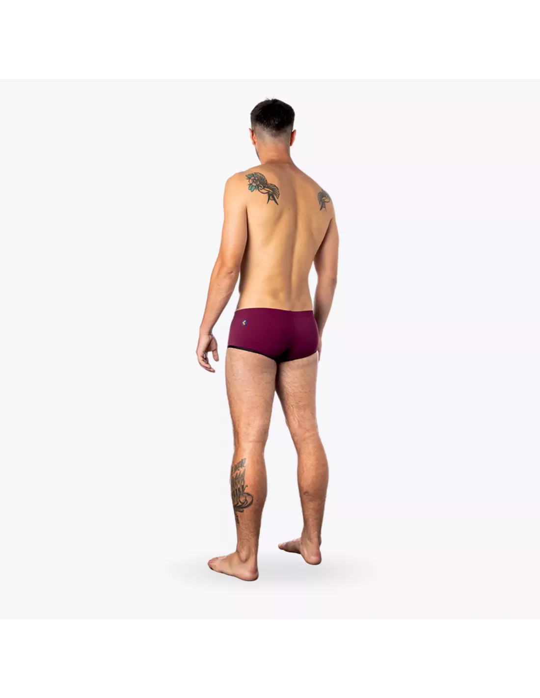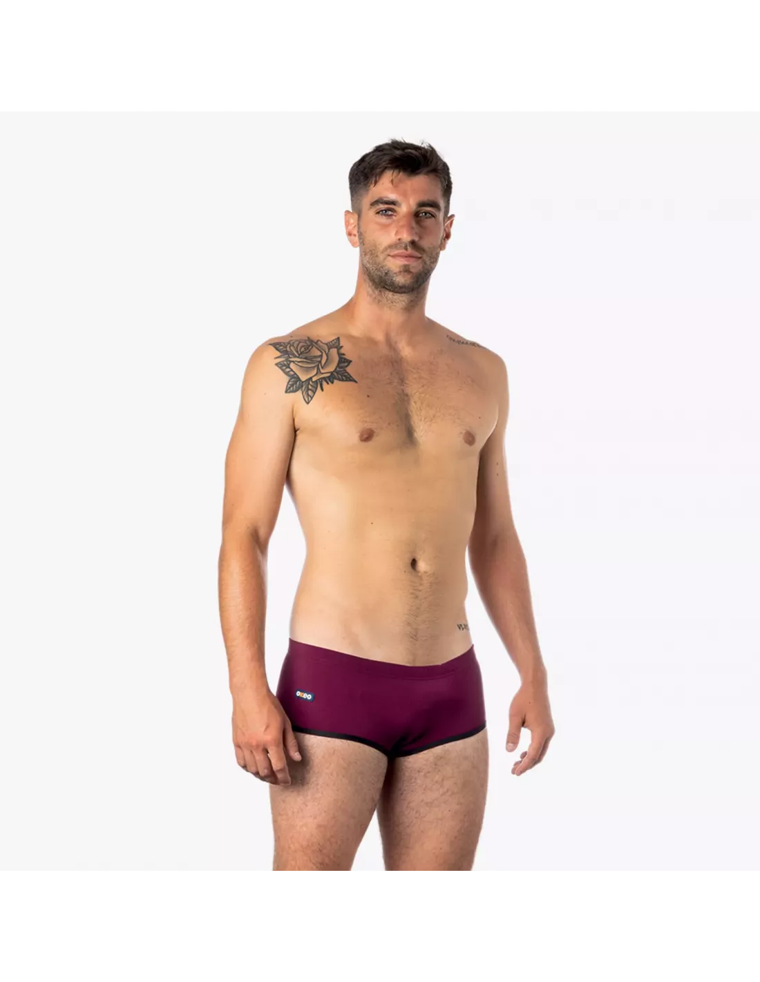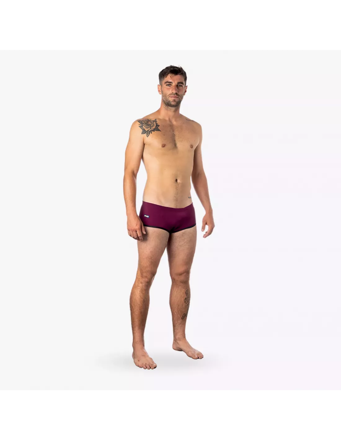Die DALIAN Herren-Shorty vereint Eleganz und Komfort – ein schlichtes, aber dennoch markantes Design. Die bordeauxrote Farbe wird durch kontrastierende schwarze Details akzentuiert, die die Linienführung betonen und den modernen Stil unterstreichen.