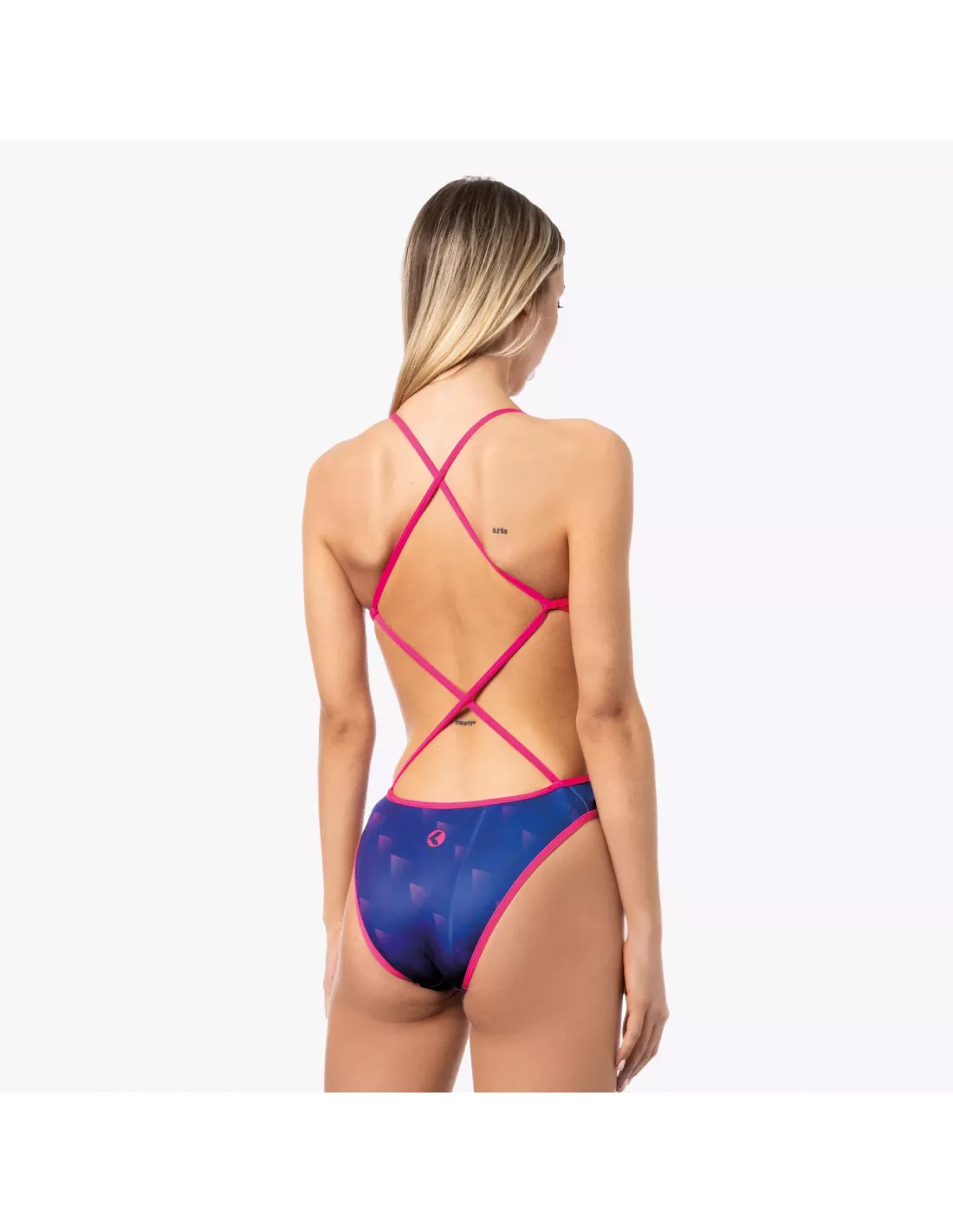 Dünne Träger verleihen dem Kleid Eleganz und Komfort, während das Futter für optimale Abdeckung und eine schöne Silhouette sorgt. Das leuchtende Blau mit fuchsiafarbenen Details kreiert einen dynamischen und modernen Look – perfekt für alle, die gerne im Mittelpunkt stehen.