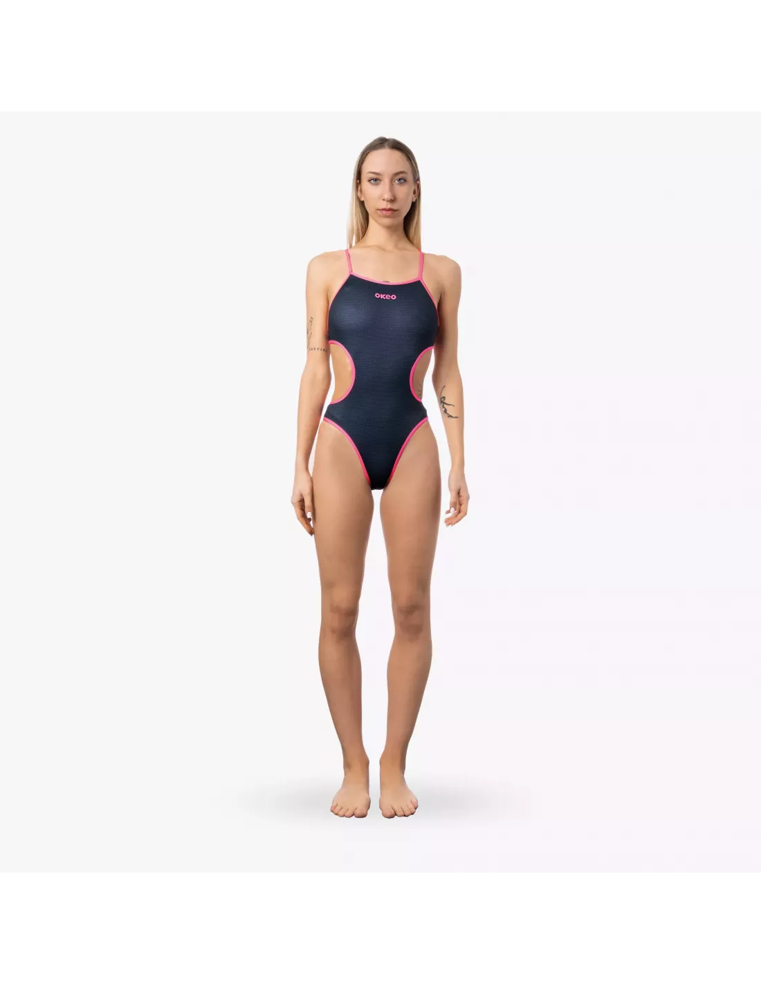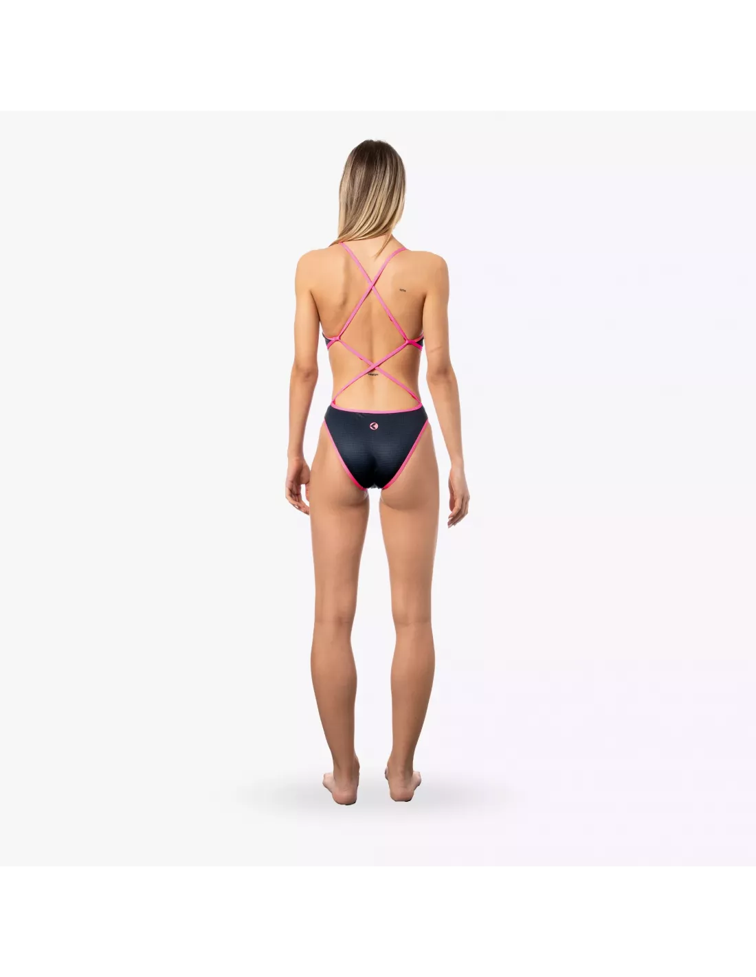 Produktcode: A00005Der Badeanzug VOLCANO vereint Eleganz und Komfort dank seines ultradünnen Designs aus X-PLAY-Material, Futter und schmalen Trägern. Die schwarze Farbe mit Mikrotextur und fuchsiafarbenem Besatz macht ihn perfekt für Pool und Strand und betont Ihre Silhouette stilvoll.