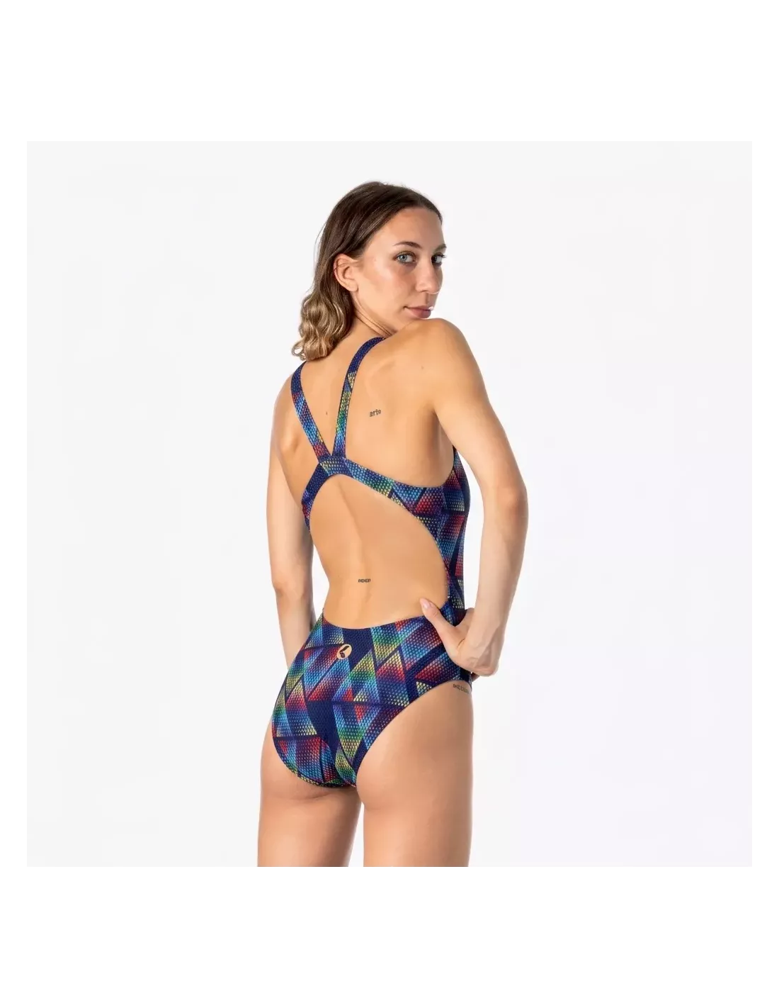 Entdecken Sie DASH , den Einteiler, der kühnes Design und maximale Performance vereint. Das farbenfrohe geometrische Muster auf blauem Grund sorgt für einen modernen und dynamischen Look, während die breiten Schulterträger das sportliche Design unterstreichen und gleichzeitig Komfort und Sicherheit gewährleisten.