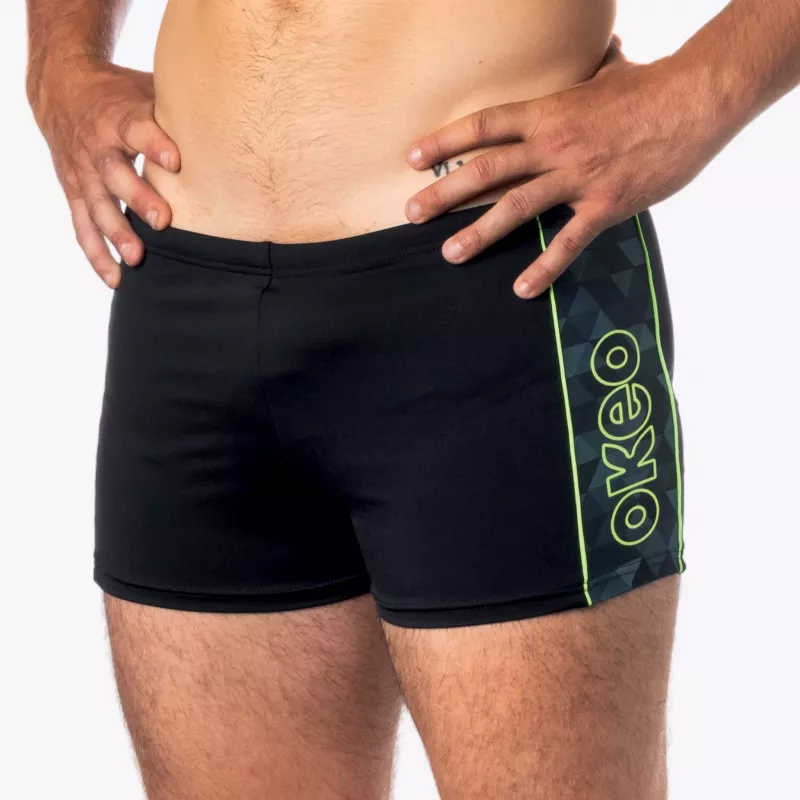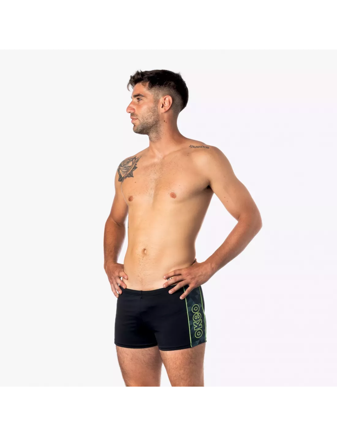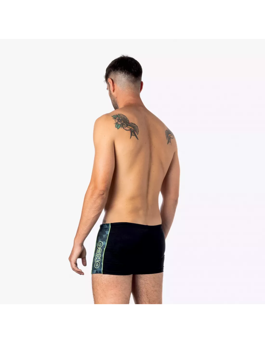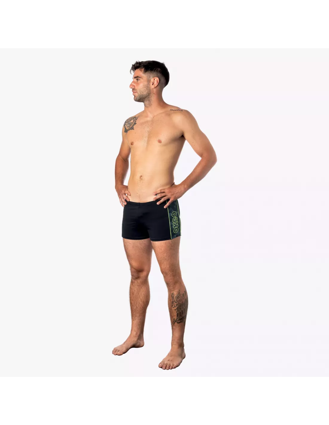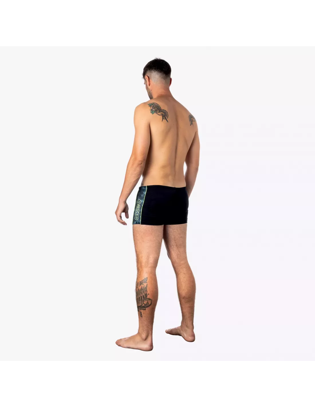 Die Herren-Badeshorts DIAMANTE vereinen schlichtes Schwarz mit einem geometrischen grauen Seitenstreifen zu einem eleganten, modernen Stil. Gefertigt aus Sidney Eco -Gewebe mit integriertem Slip, bieten sie Komfort, Langlebigkeit und schnelles Trocknen.