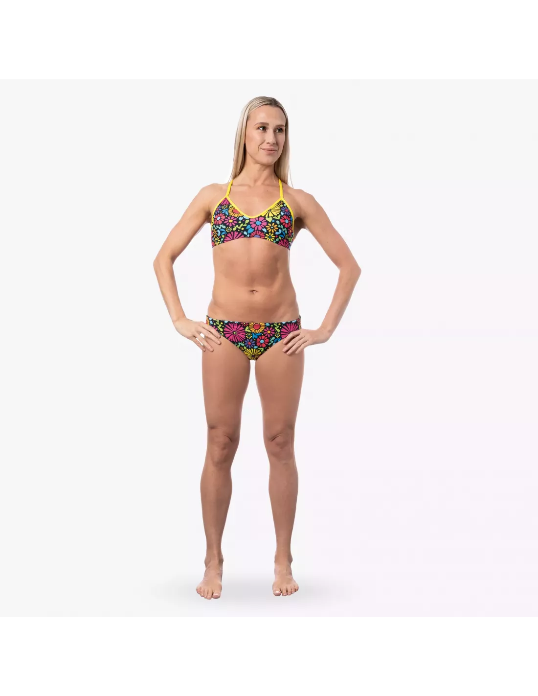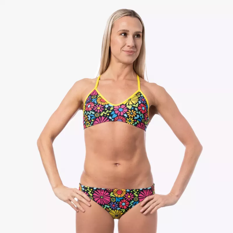 Der FIONA Badeanzug ist ein eleganter Zweiteiler, der Komfort und Stil vereint. Gefertigt aus dem revolutionären Shiro-Gewebe, einem innovativen Material, das Langlebigkeit und Anpassungsfähigkeit garantiert, besticht er durch ein lebendiges, mehrfarbiges Blumenmuster mit gelben Zierstreifen, das ihm eine frische und originelle Note verleiht. Das Modell ist gefüttert für mehr Komfort und Bedeckung, während die Push-up- und herausnehmbaren Cups optimalen Halt bieten und die Figur auf natürliche Weise schmeicheln. Perfekt für alle, die einen raffinierten und gleichzeitig praktischen Look für sonnige Tage und am Pool suchen.