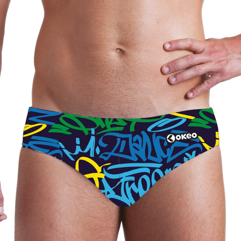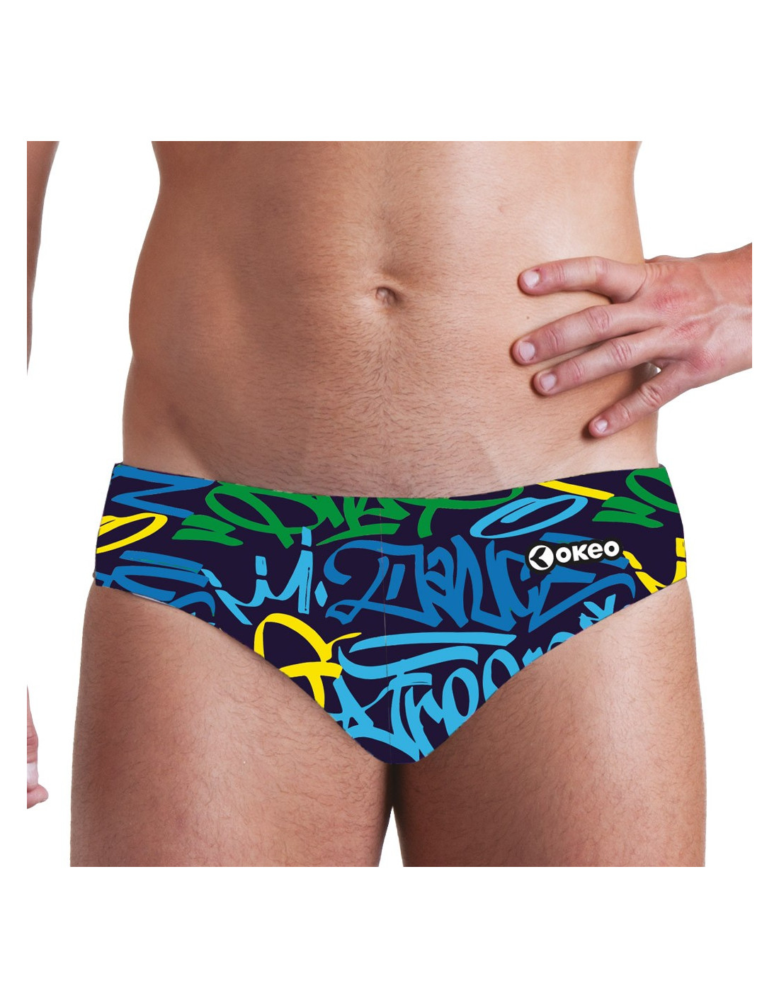 Die GERO Herren-Badehose aus gefüttertem Sidney Eco-Gewebe vereint Nachhaltigkeit und Komfort mit einem lebendigen Graffiti-Print in Blau und Gelb. Ideal für alle, die im Schwimmbad Wert auf einen unverwechselbaren Look und optimale Performance legen.