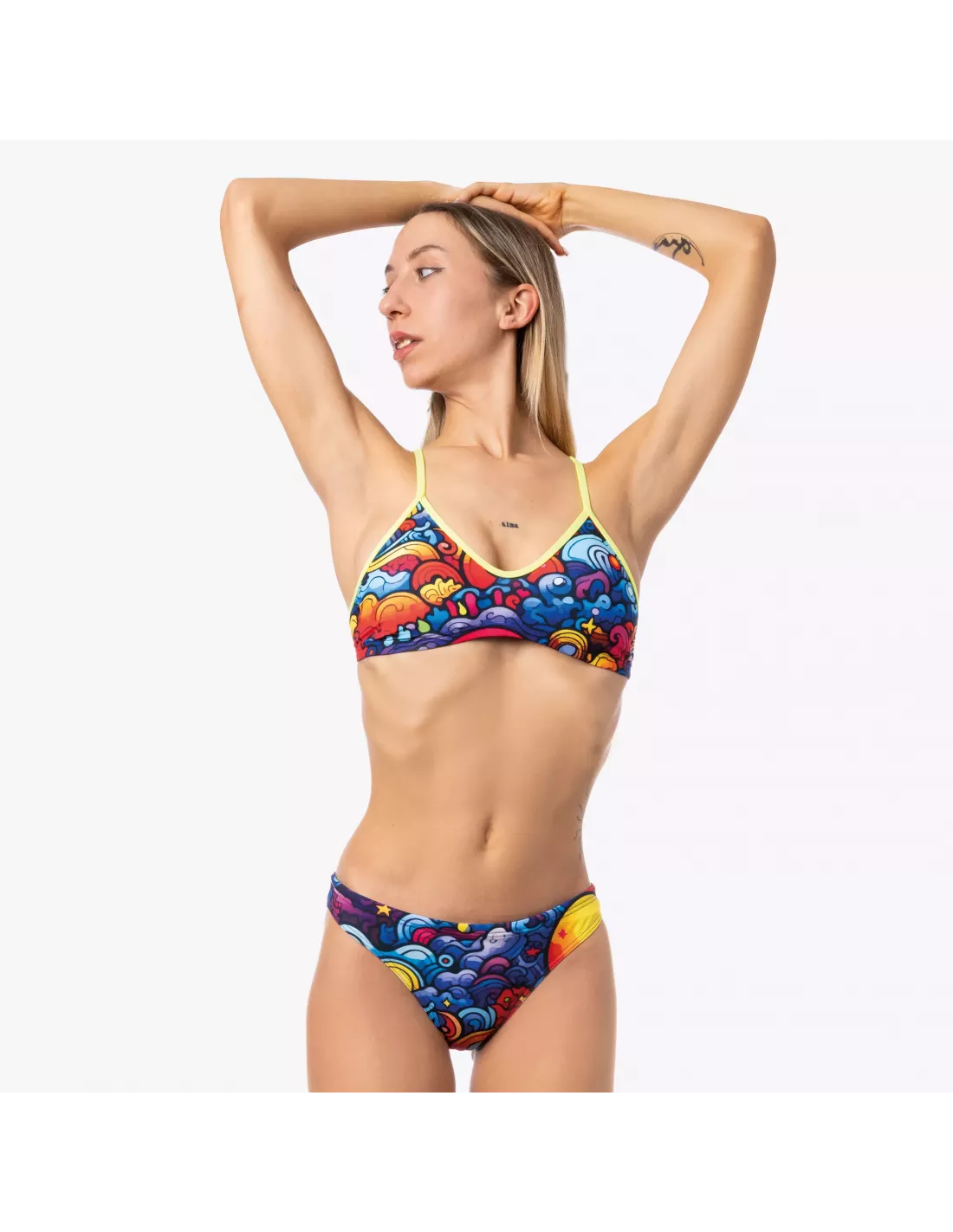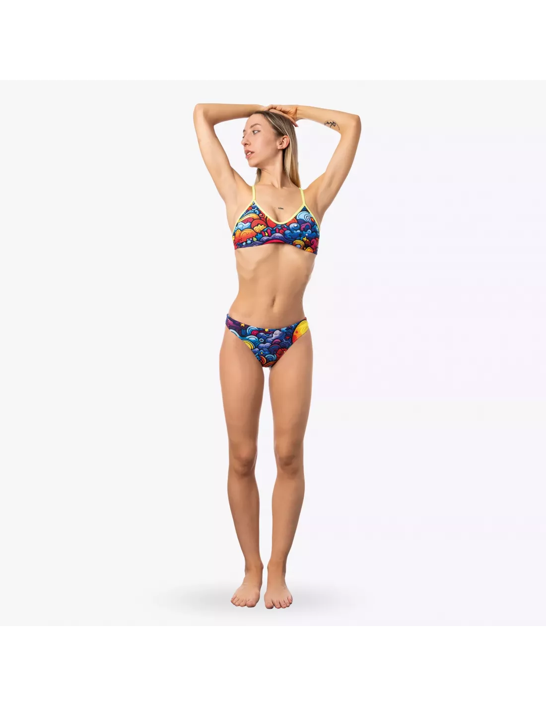 Mit dem zweiteiligen Badeanzug „GIULIA“ unterstreichen Sie Ihren Stil – ein Modell, das Eleganz und Originalität vereint. Sein exklusives, farbenfrohes Wellenmuster verleiht ihm eine lebendige und moderne Note und ist perfekt für alle, die am Pool oder Strand auffallen möchten.