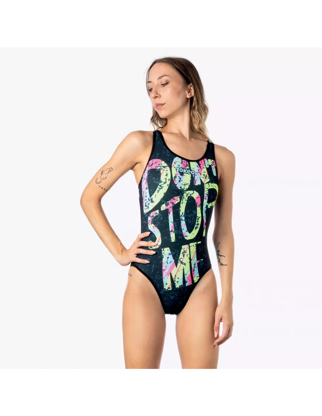 Der auffällige und ausdrucksstarke Badeanzug GLAMOUR ist perfekt für alle, die auch im Schwimmbad auffallen möchten. Der mehrfarbige Graffiti-Print auf dunklem Grund sorgt für einen dynamischen und modernen Look – ideal für intensive Workouts oder für alle, die stilvoll schwimmen wollen.