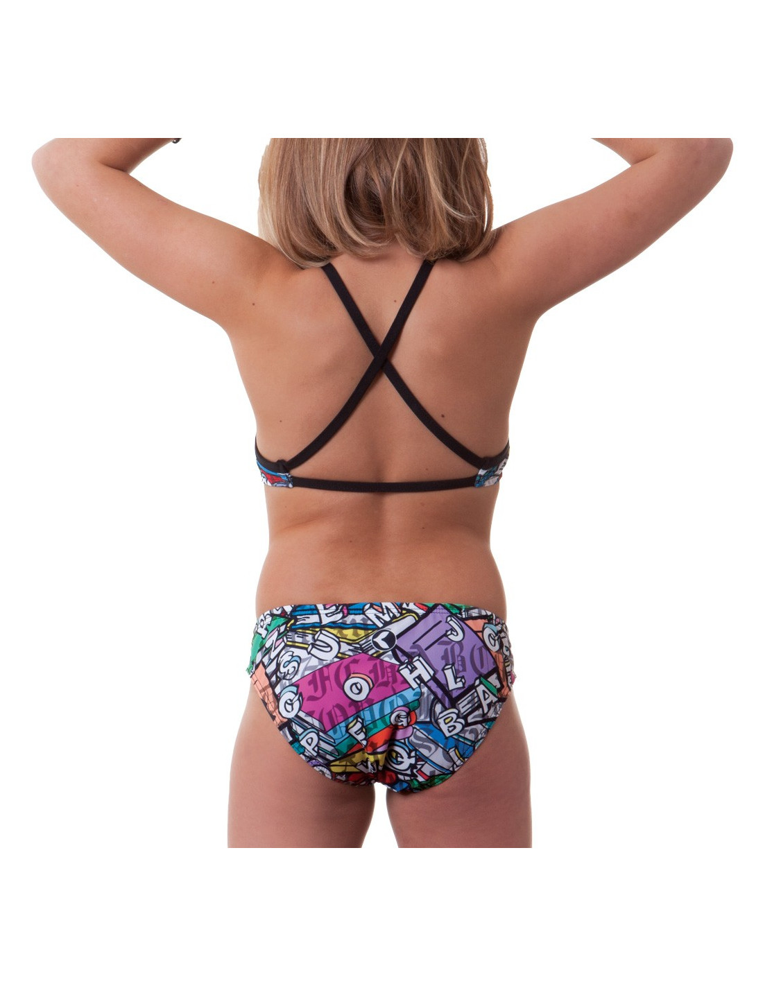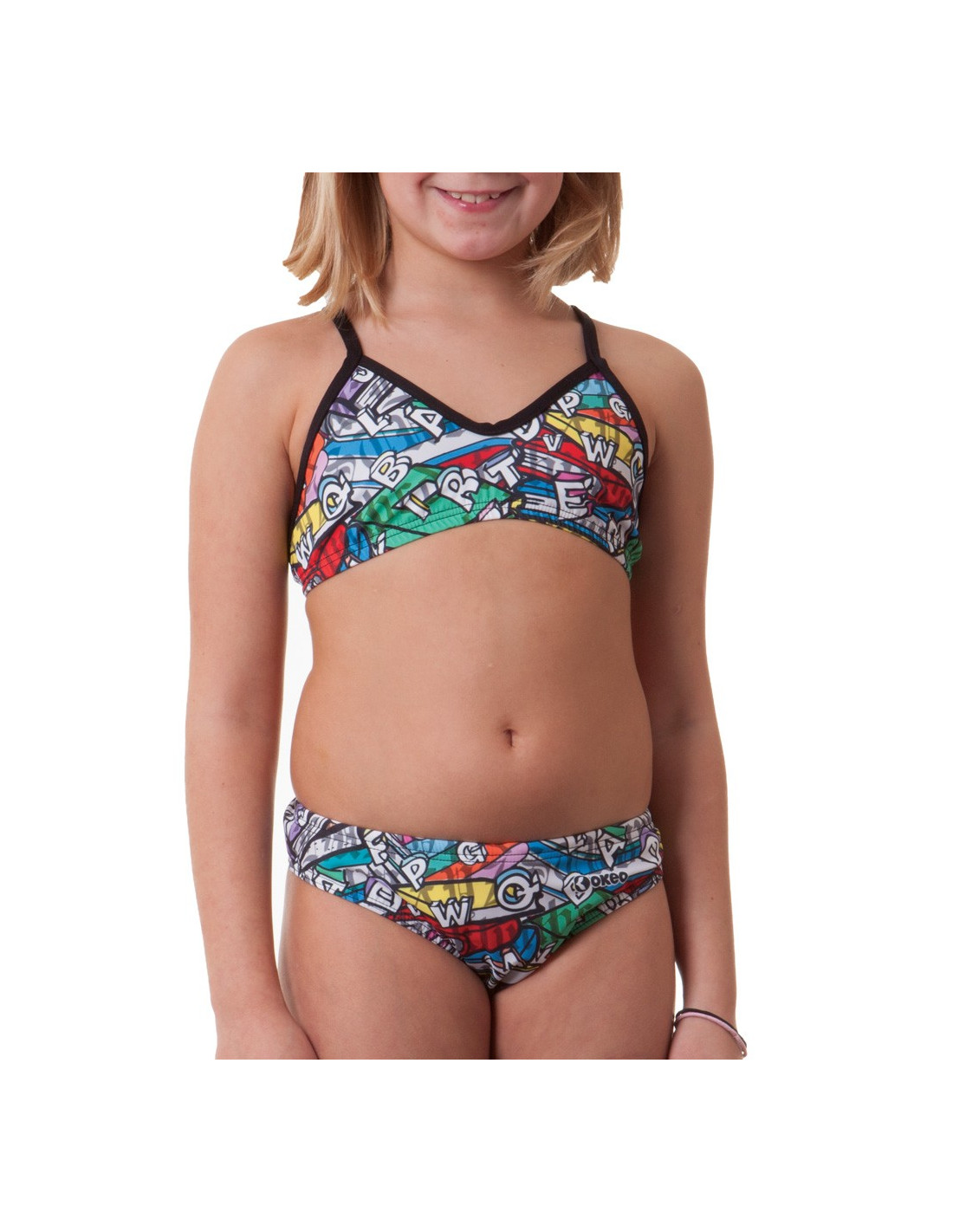 Produktcode: A61002Der zweiteilige GUIA-Badeanzug für Mädchen mit seinem farbenfrohen, von Comics inspirierten Design bietet Komfort und Bewegungsfreiheit beim Schwimmen und Spielen. Hergestellt aus Sydney Eco-Gewebe, trocknet er schnell und schützt vor UV-Strahlung – ideal für Pool und Strand.