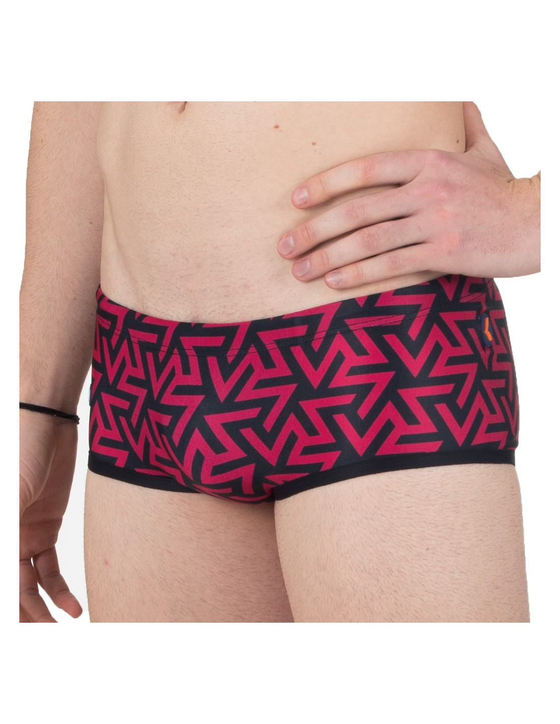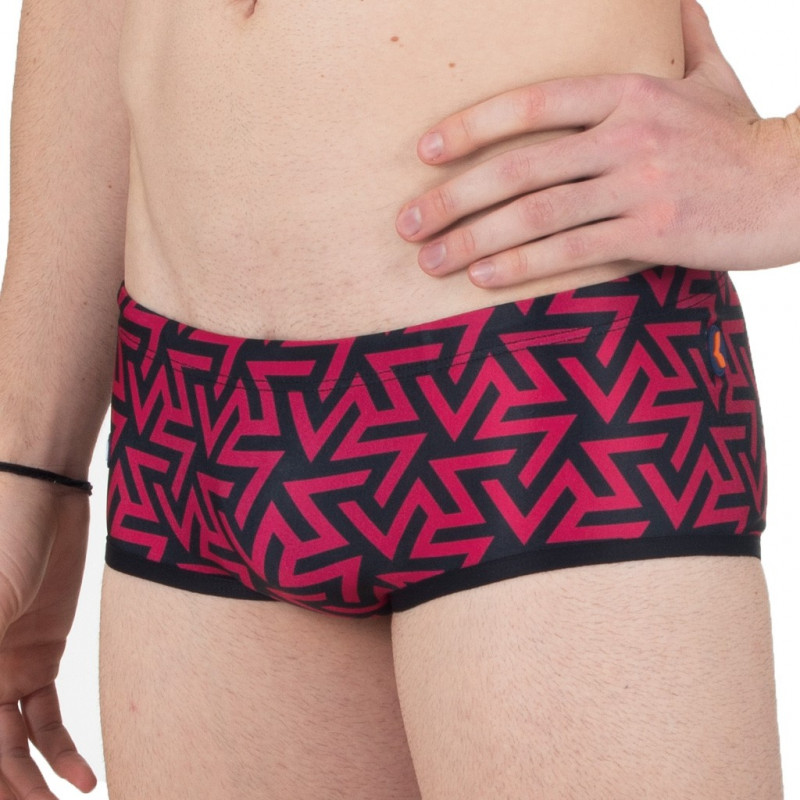 Der Shorty-Badeanzug „Medellin“ vereint Eleganz und Funktionalität. Er ist aus Sidney Eco-Gewebe gefertigt und besticht durch ein modernes, schwarz-burgunderfarbenes geometrisches Muster. Perfekt für alle, die im Wasser Komfort und Stil suchen.
