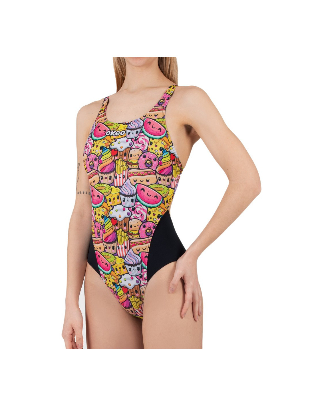 Der KAWAII-Badeanzug vereint Stil und Komfort mit einem niedlichen Kawaii-Süßigkeiten-Motiv, breiten Trägern und umweltfreundlichem Sydney-Gewebe. Er ist perfekt zum Schwimmen und Entspannen, nachhaltig und modisch.