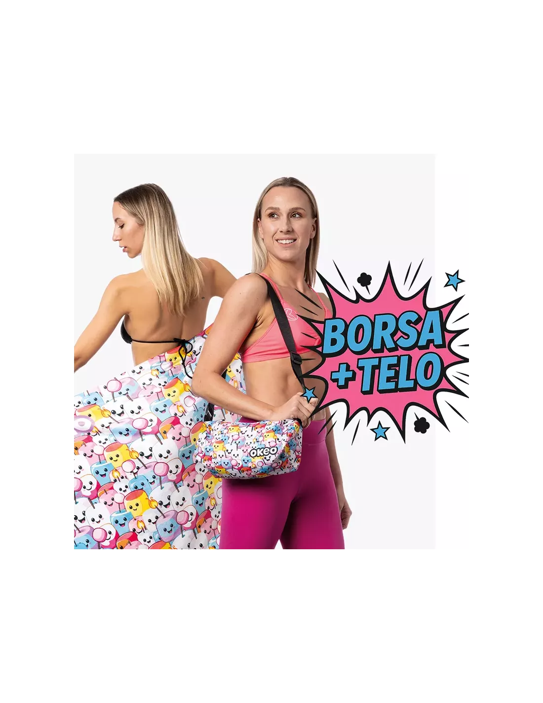 Das dazu passende 90x150 cm Strandtuch ist weich und saugfähig, perfekt zum Sonnenbaden oder Entspannen überall, immer stilvoll.