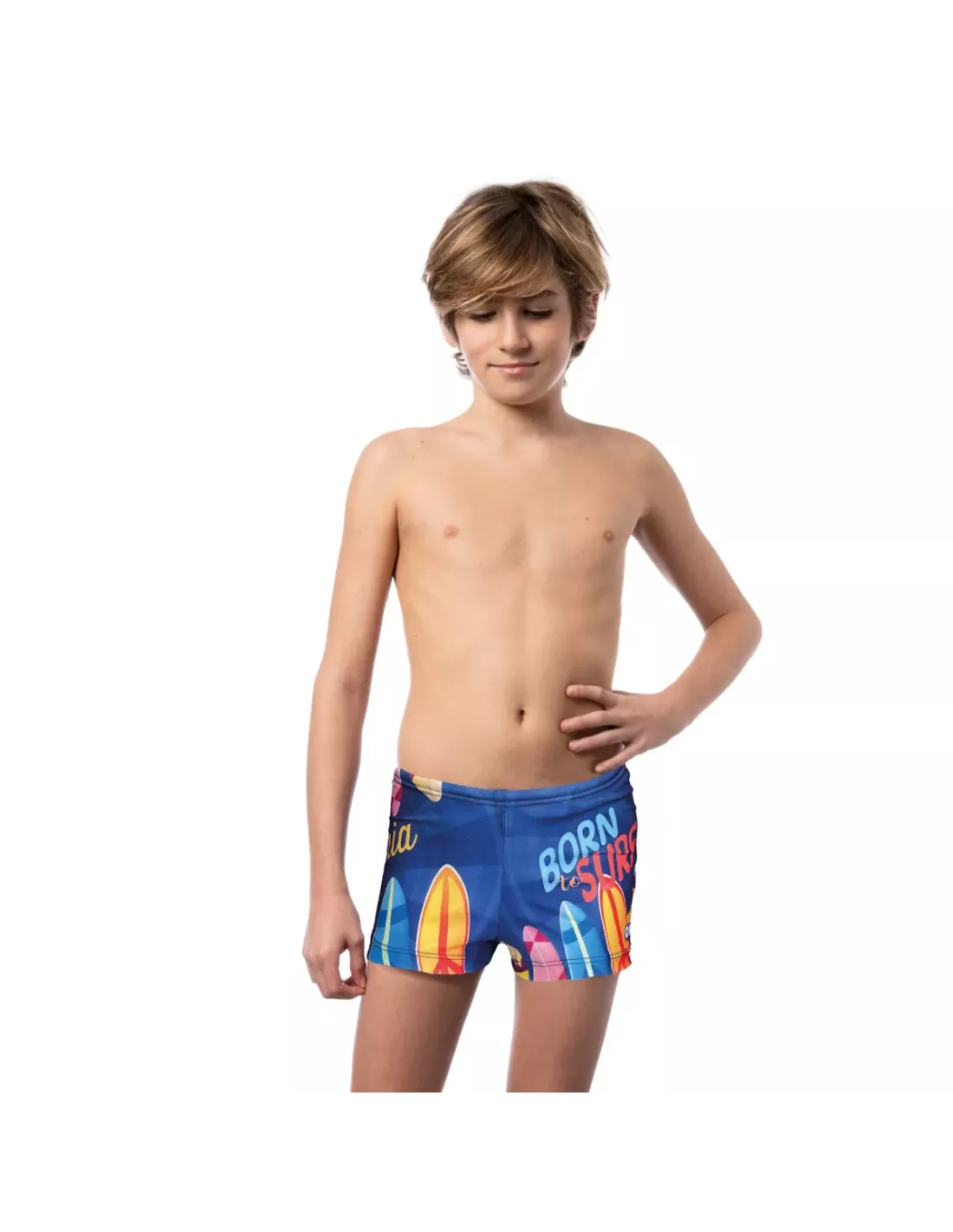 Die Badehose MALIBU ist eine Shorts für Jungen mit Surfbrettmuster und eignet sich perfekt, um sommerliche Energie an Strand und Pool zu bringen.