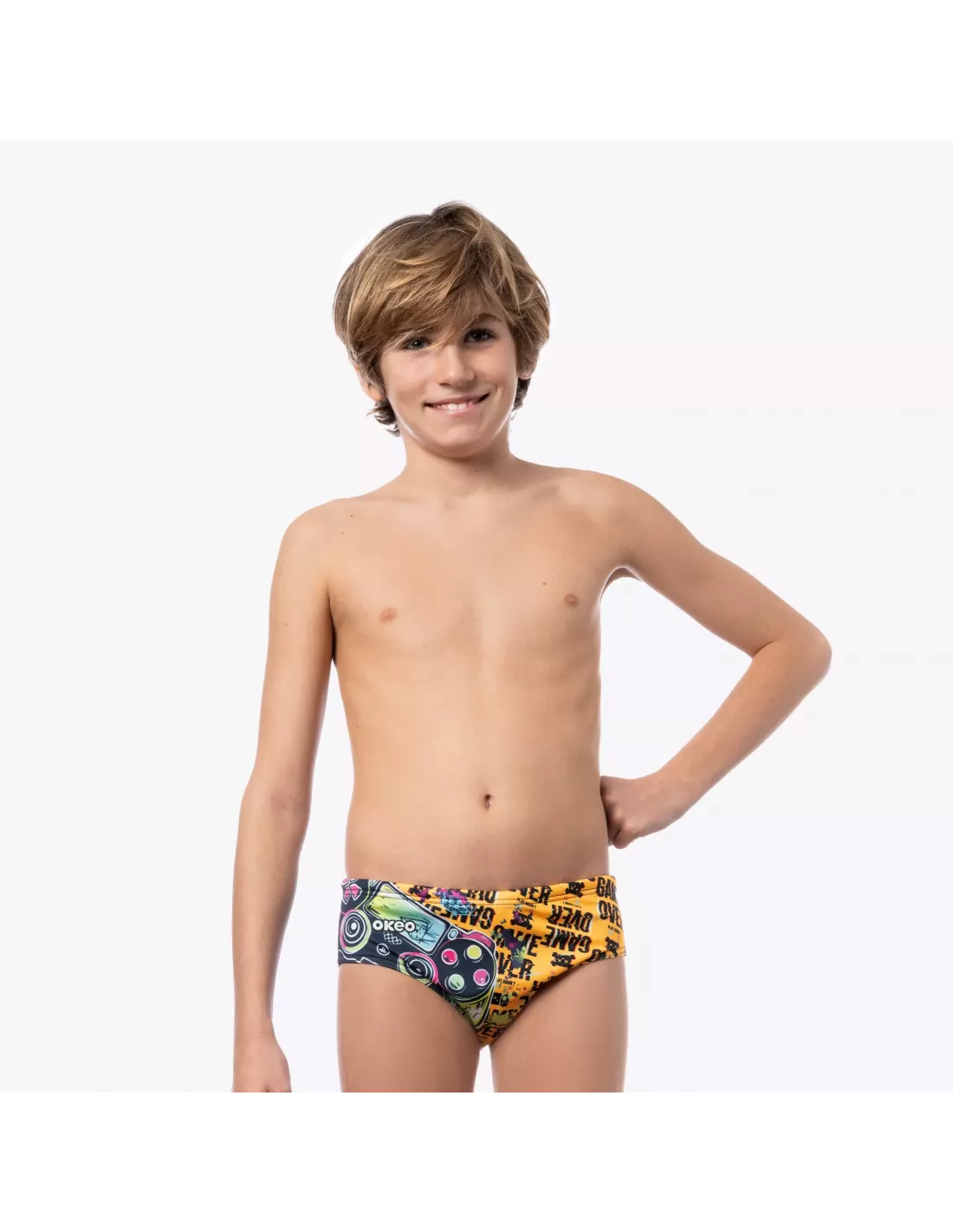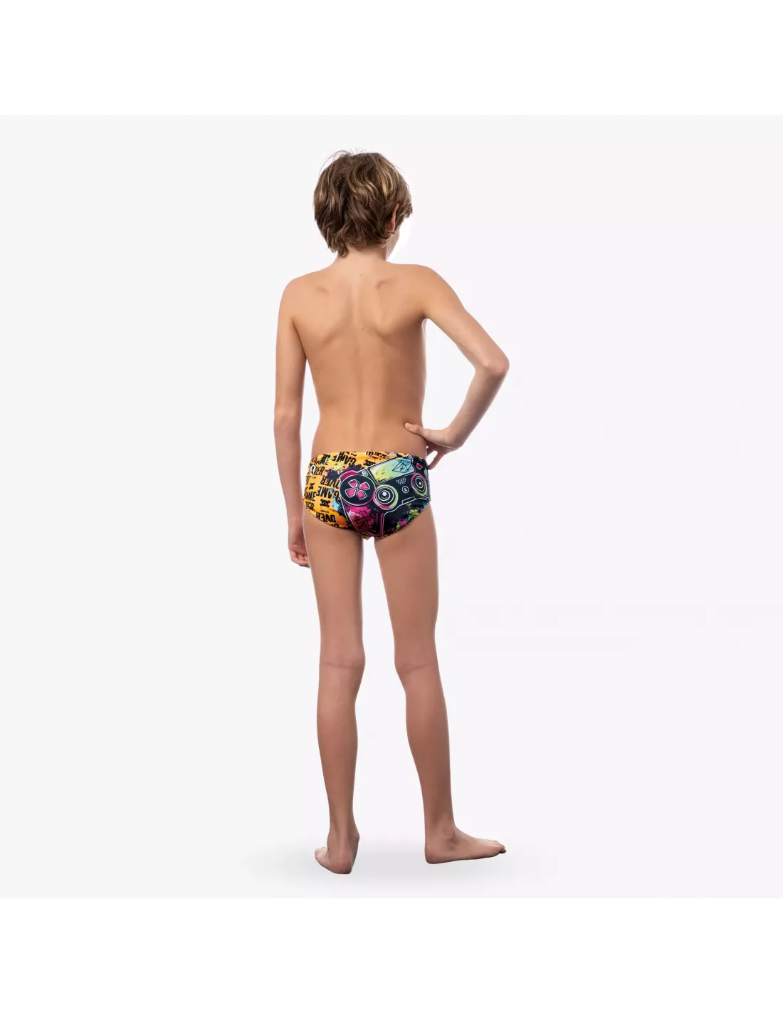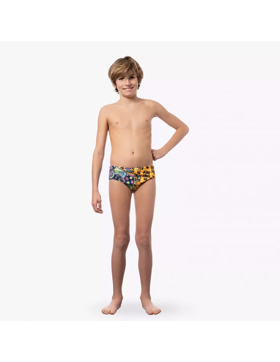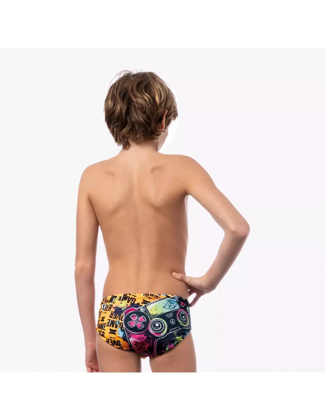 Produktcode: A7000VDie PLAY Badehose für Jungen vereint Komfort und Stil mit einem farbenfrohen Videospiel-Print auf gelbem Grund. Hergestellt aus Sydney Eco-Gewebe , ist sie strapazierfähig, umweltfreundlich und perfekt für Strand und Pool geeignet.