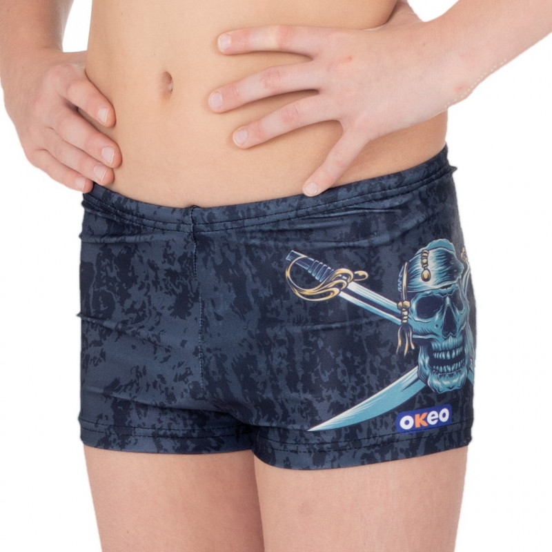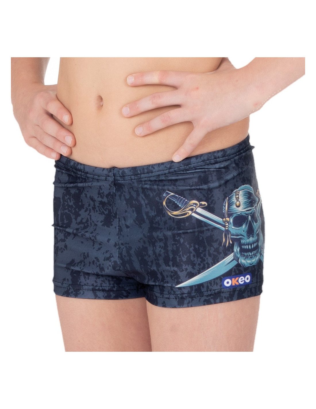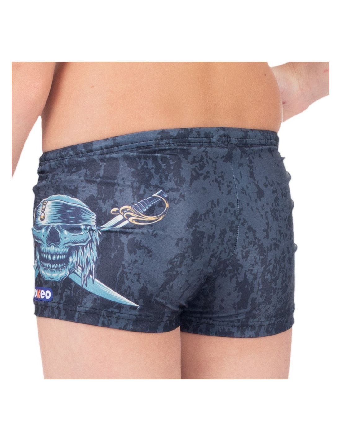 Die Badeshorts „Montevideo“ für Jungen sind aus umweltfreundlichem Sydney-Stoff gefertigt und mit einem Piratenmotiv auf dunklem Hintergrund versehen – ideal für Abenteuer am Pool oder Strand. Vielseitig und nachhaltig, eignen sie sich perfekt für jede Jahreszeit, vom Sommer bis zum Winter.