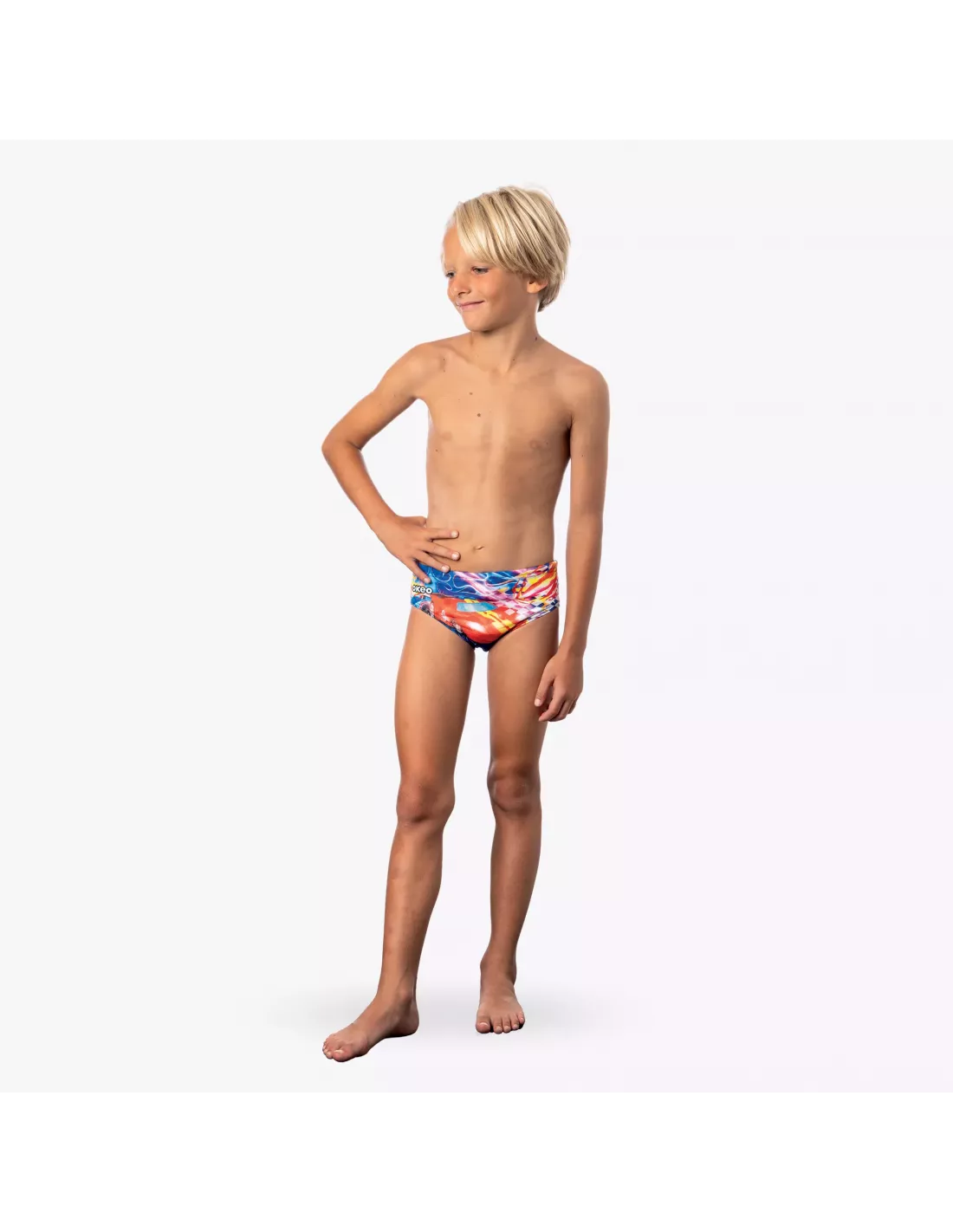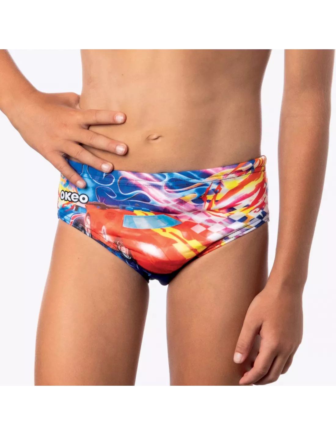 BOOSTER ist eine Jungen-Badehose aus strapazierfähigem, schnelltrocknendem Sidney-Öko-Gewebe . Mit ihrem farbenfrohen Rennwagen- Design vereint sie Komfort, Bewegungsfreiheit und Wasserspaß.