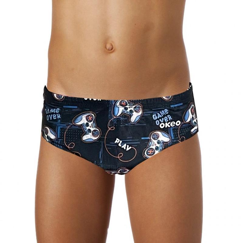 „PAKI“ Junior-Badehose mit Videospiel-Motiven: leuchtende Farben, einzigartiger Stil und perfekter Tragekomfort für den Strand. Leicht, bequem und schnelltrocknend!