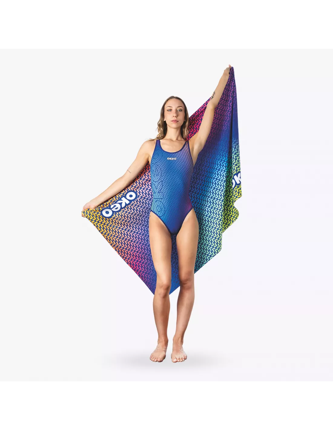 Produktcode: AB0038LACE ist das hochwertige Mikrofaser- Poolhandtuch von Okeo – leicht, weich und schnelltrocknend .