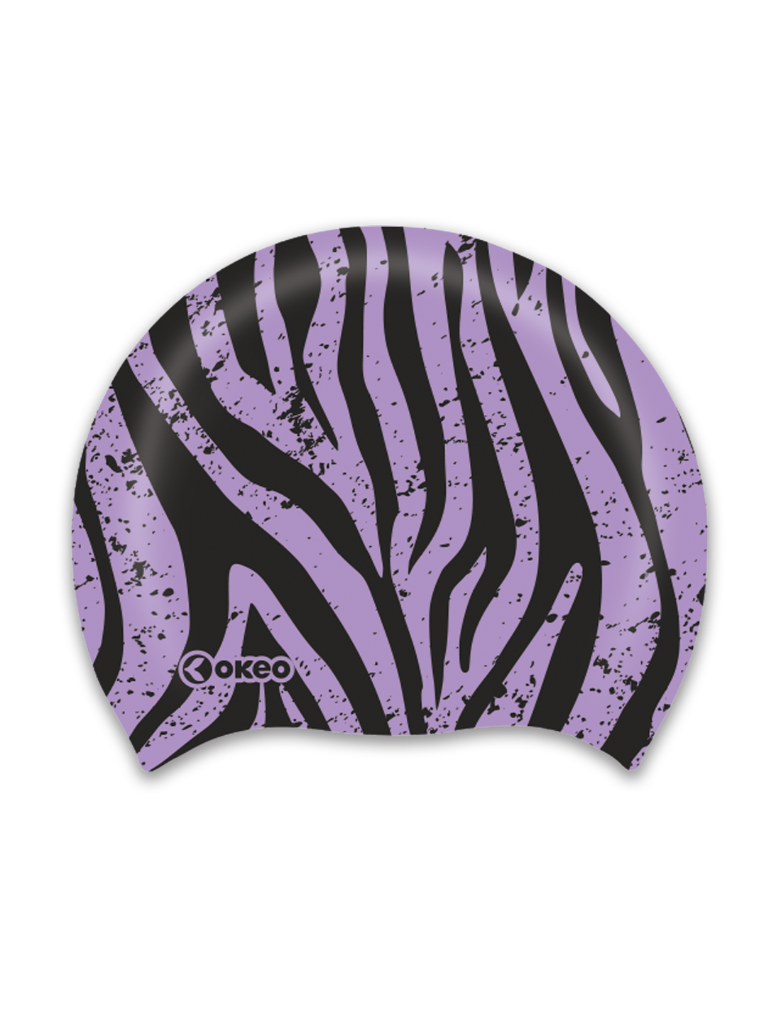 Produktcode: AK002MDie lila Silikon-Badekappe bietet optimale Passform und ein ergonomisches Design zur Reduzierung des Wasserwiderstands. Verziert mit einem lila-schwarzen Zebramuster, garantiert sie Langlebigkeit und hohen Tragekomfort.