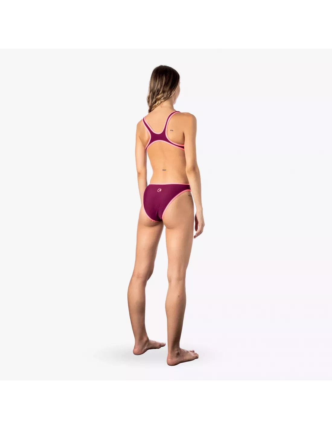 Der einteilige Badeanzug MAISON vereint Eleganz und Komfort. Sein ultraschmales Design betont die Silhouette. Die edle , bordeauxrote Farbe wird durch zarte rosa Akzente dezent akzentuiert und bildet so einen femininen Kontrast.