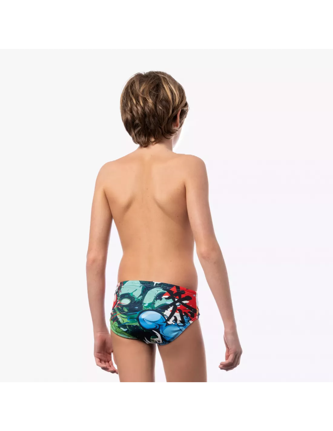 Die FREESTYLE Badehose für Jungen vereint Stil und Komfort mit einem farbenfrohen Graffiti-Print. Hergestellt aus Sydney Eco-Gewebe , ist sie strapazierfähig, umweltfreundlich und perfekt für jedes Wasserabenteuer.