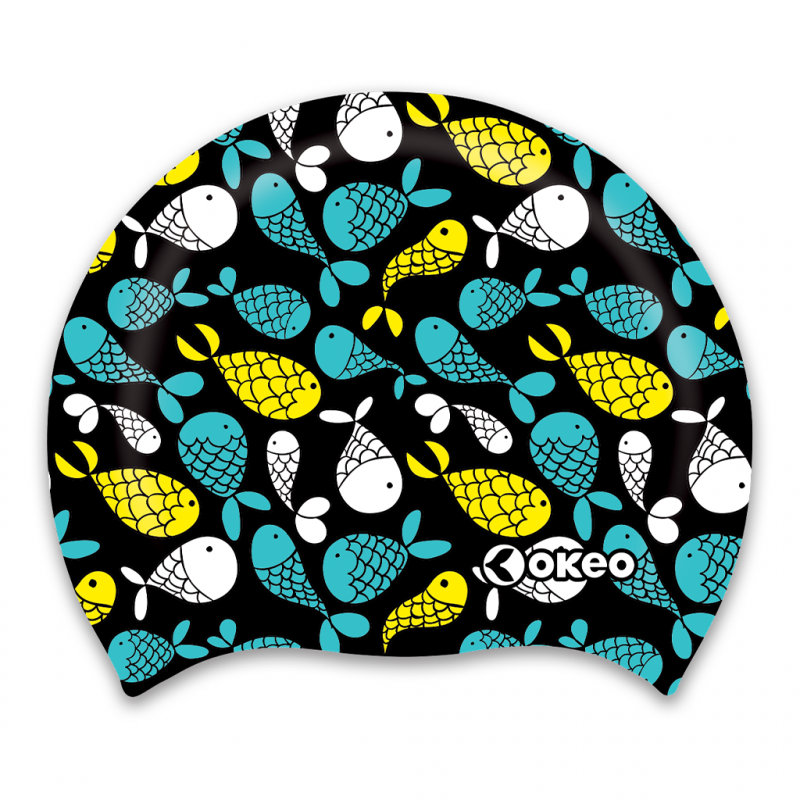 Produktcode: AK002WDie GOLDFISH-Badekappe aus strapazierfähigem Silikon mit Fischmotiv auf schwarzem Hintergrund bietet eine ergonomische Passform und reduziert den Wasserwiderstand. Sie ist ideal für Schwimmer aller Leistungsstufen und garantiert Komfort und Langlebigkeit.