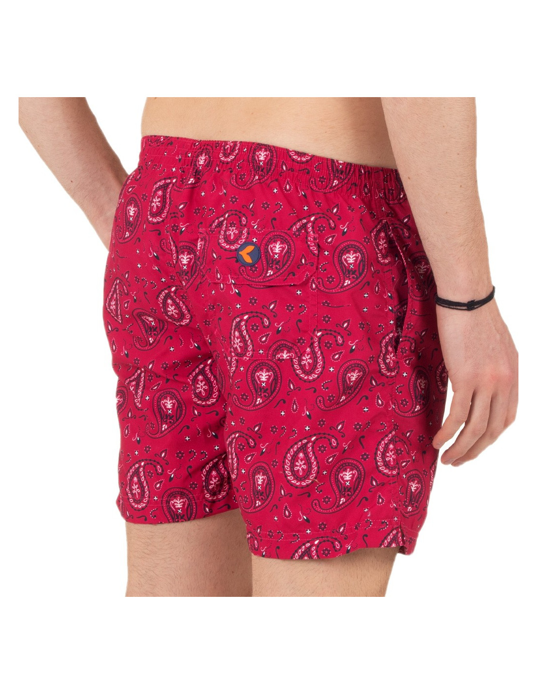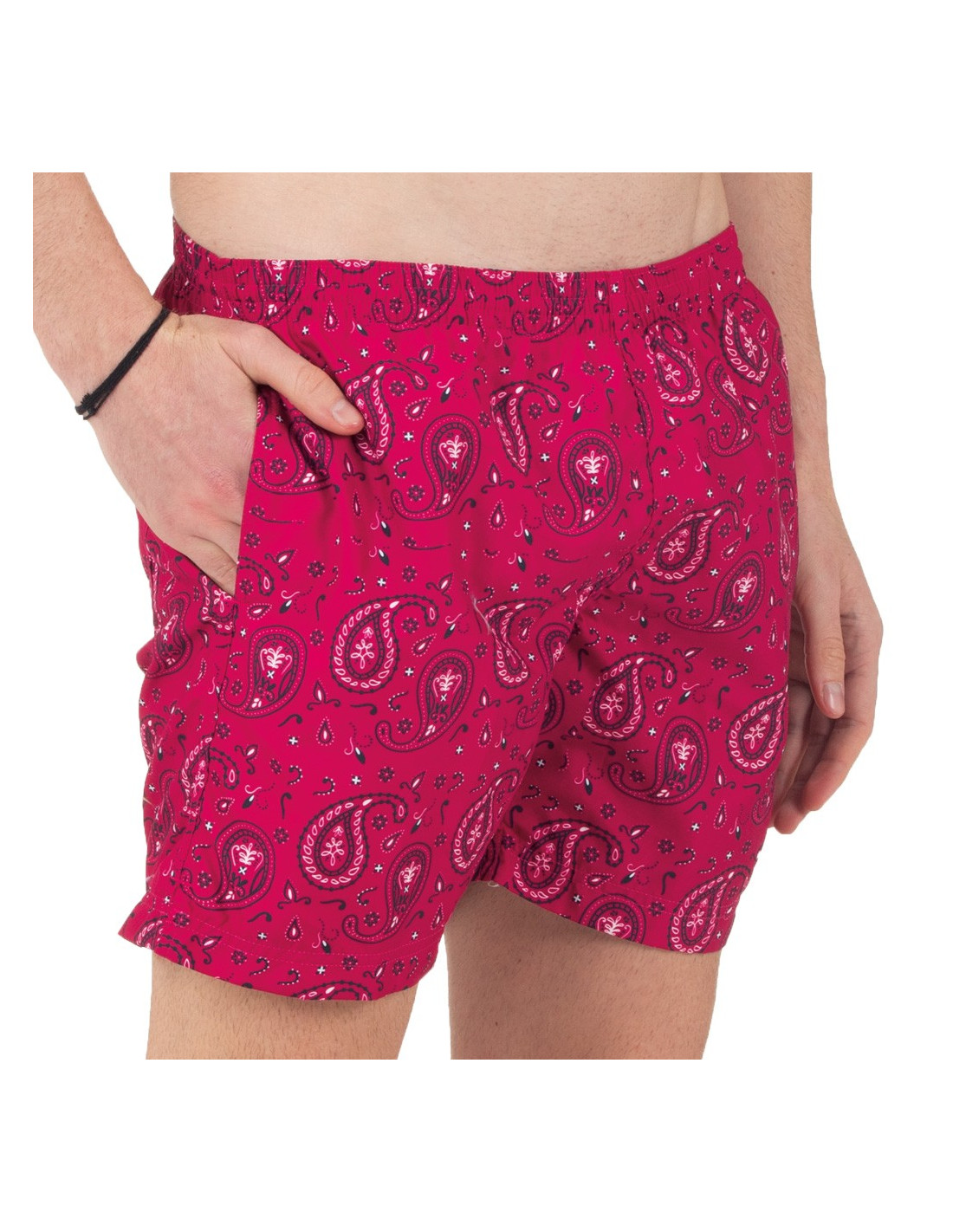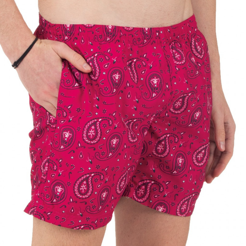 Herren-Badehose mit Seitentaschen und Gesäßtasche. Innenliegendes Mesh-Gewebe für optimale Unterstützung. Mandala-Print auf bordeauxrotem Grund. Schnelltrocknend!