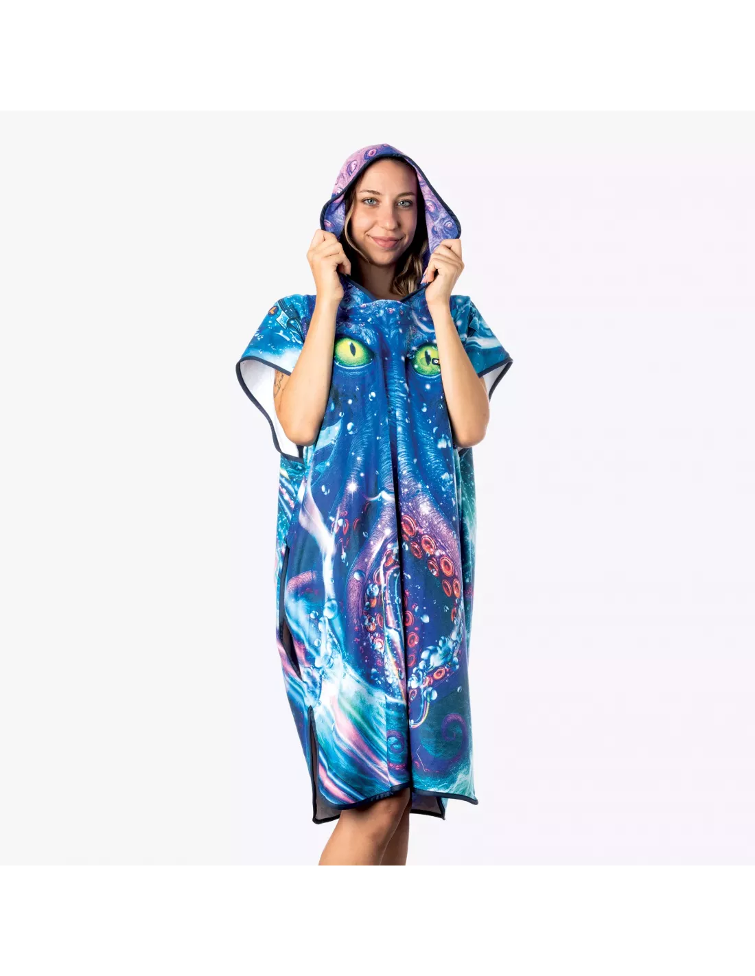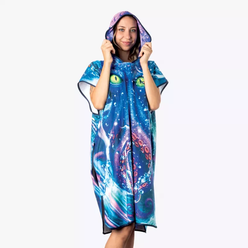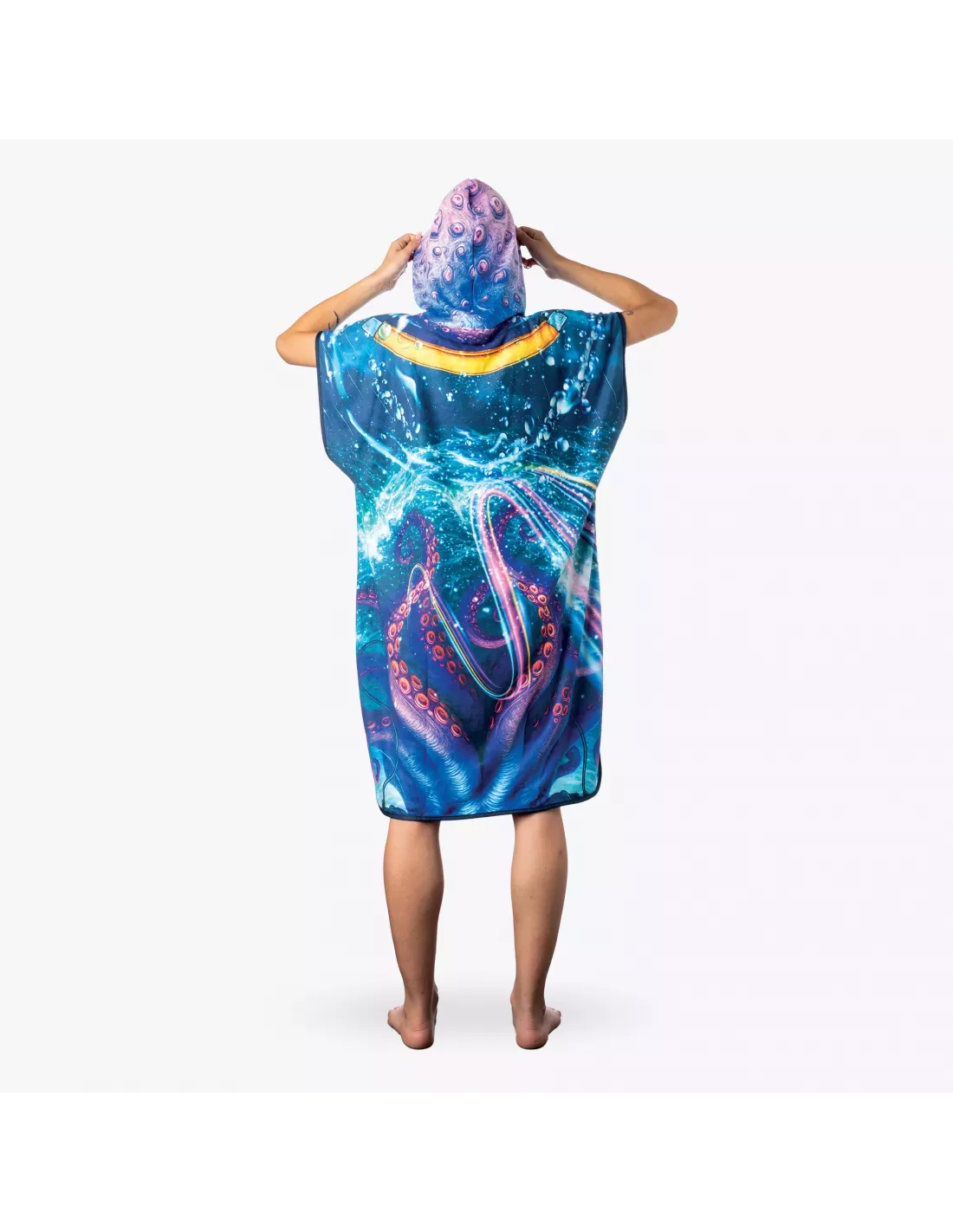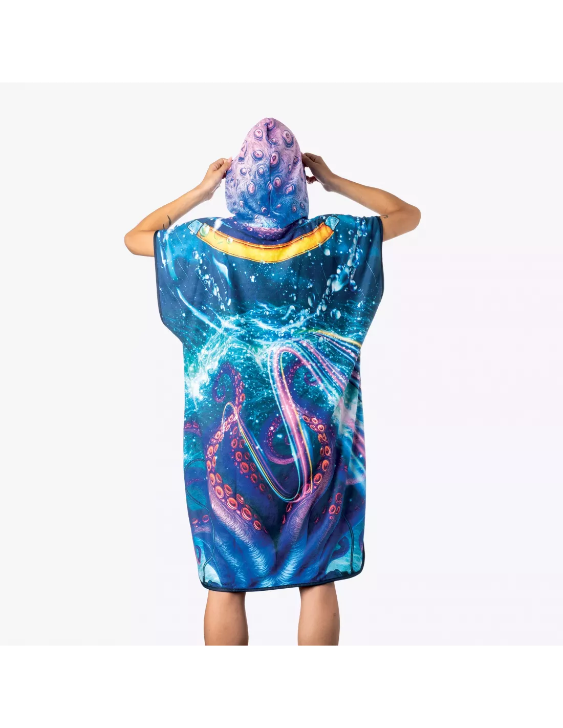 Hochwertiger Mikrofaser-Poncho mit Kapuze, farbenfrohem Oktopusmuster und schnelltrocknend.