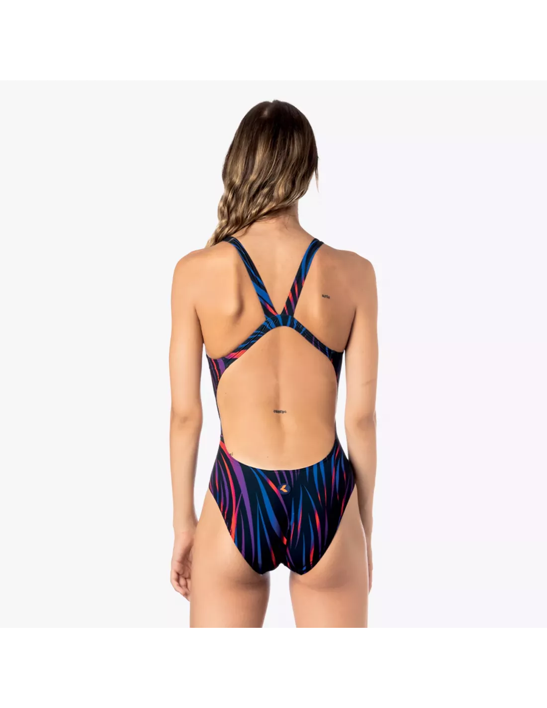 Der elegante und raffinierte Badeanzug PARADE ist für alle entworfen, die auch im Schwimmbad Wert auf Komfort und Stil legen. Das violette Muster, das durch das dunkle Höschen zusätzlich betont wird, verleiht ihm eine edle und feminine Note.