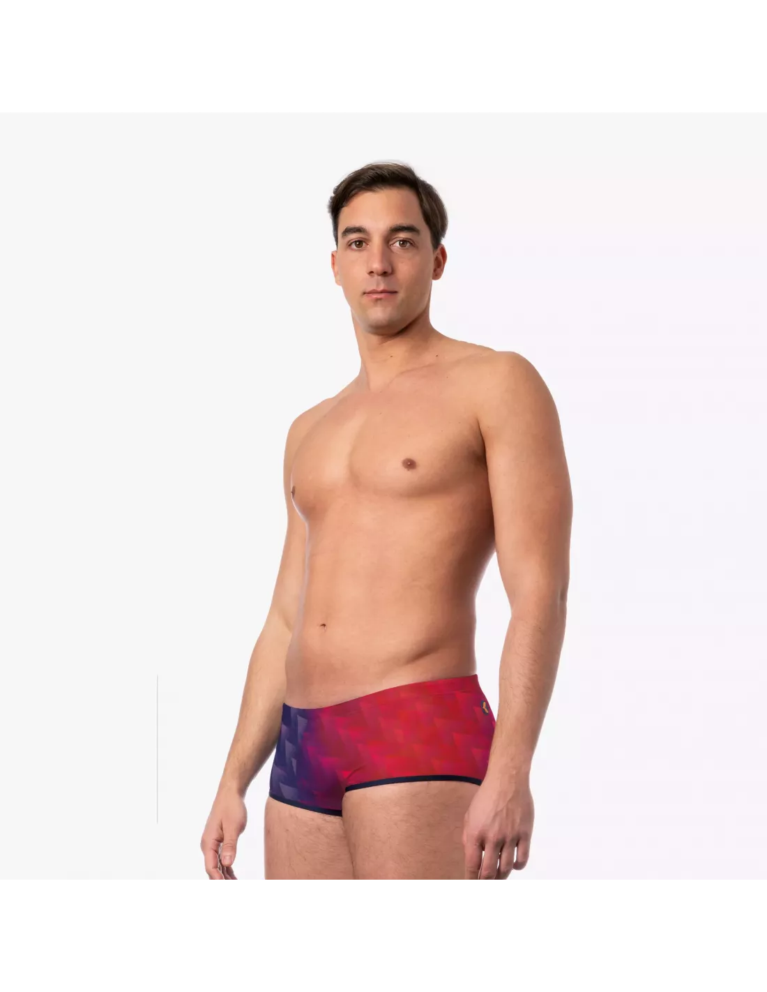 Die kurze Herrenbadehose von PAUL ist aus Sydney Eco-Gewebe gefertigt und besticht durch ein leuchtendes rot-blaues geometrisches Muster . Sie vereint Komfort, Langlebigkeit und Stil. Eine hervorragende, umweltfreundliche Wahl für den Sommer!