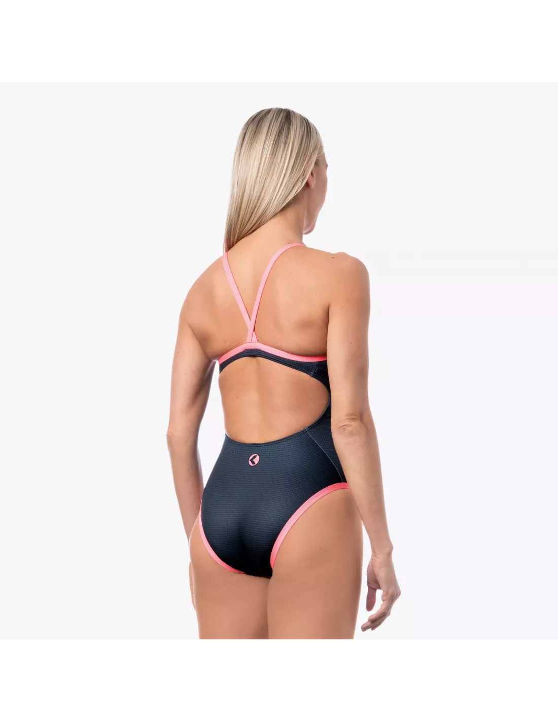 Der PETRA - FUN&FIT Damen-Badeanzug vereint Komfort und Stil. Er besteht aus chlorbeständigem X-Play-Material, bietet optimalen Halt im Brustbereich und ist innen gefüttert. Das dunkelgraue Design mit rosa Zierstreifen ist ideal für Schwimmerinnen, die Wert auf Funktionalität und Eleganz legen.
