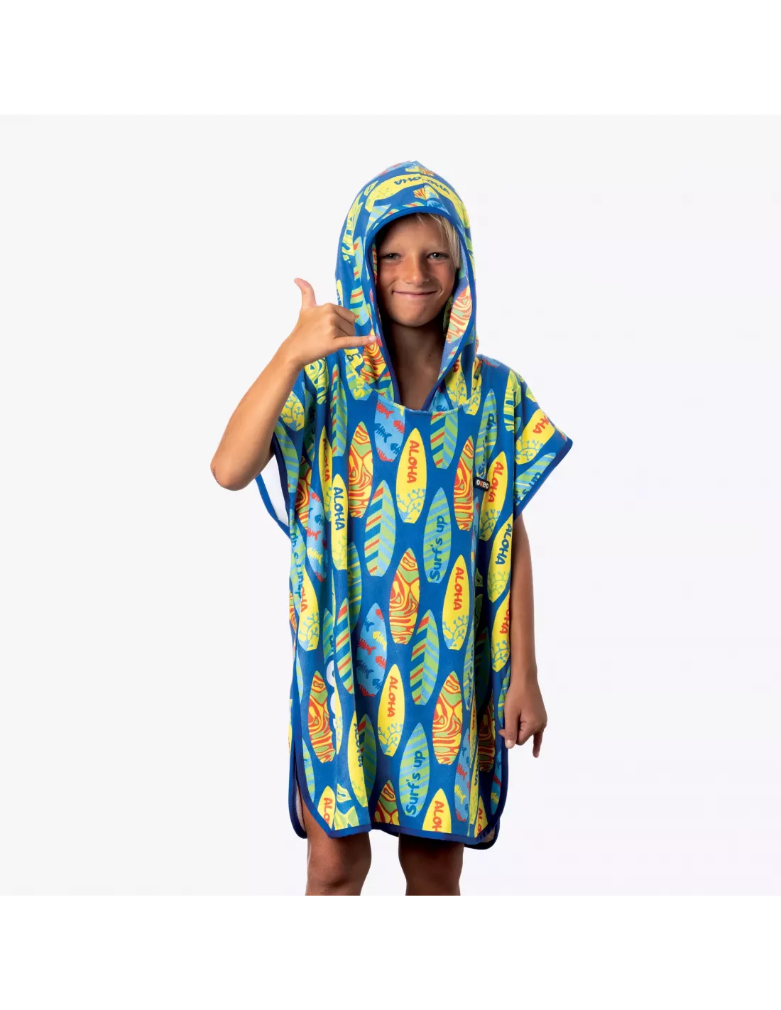 Produktcode: AC221BDer MAUI Mikrofaser-Poncho ist leicht, saugfähig und schnelltrocknend und somit ideal für Kinder im Alter von 5 bis 10 Jahren. Mit Kapuze und farbenfrohem Surfbrett-Print ist er perfekt zum einfachen Umziehen am Pool oder am Strand.