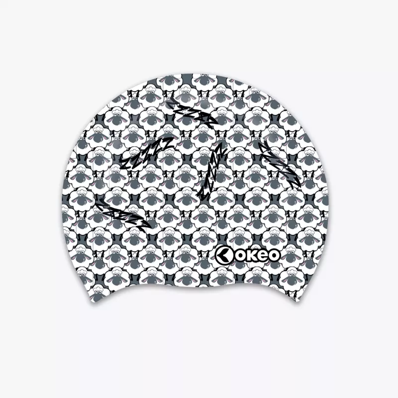 Die Silikonkappe SKYE mit dem niedlichen Schaf-Motiv ist strapazierfähig, dehnbar und angenehm zu tragen. Schützen Sie Ihr Haar im Pool mit einem Hauch von Spaß und Originalität.