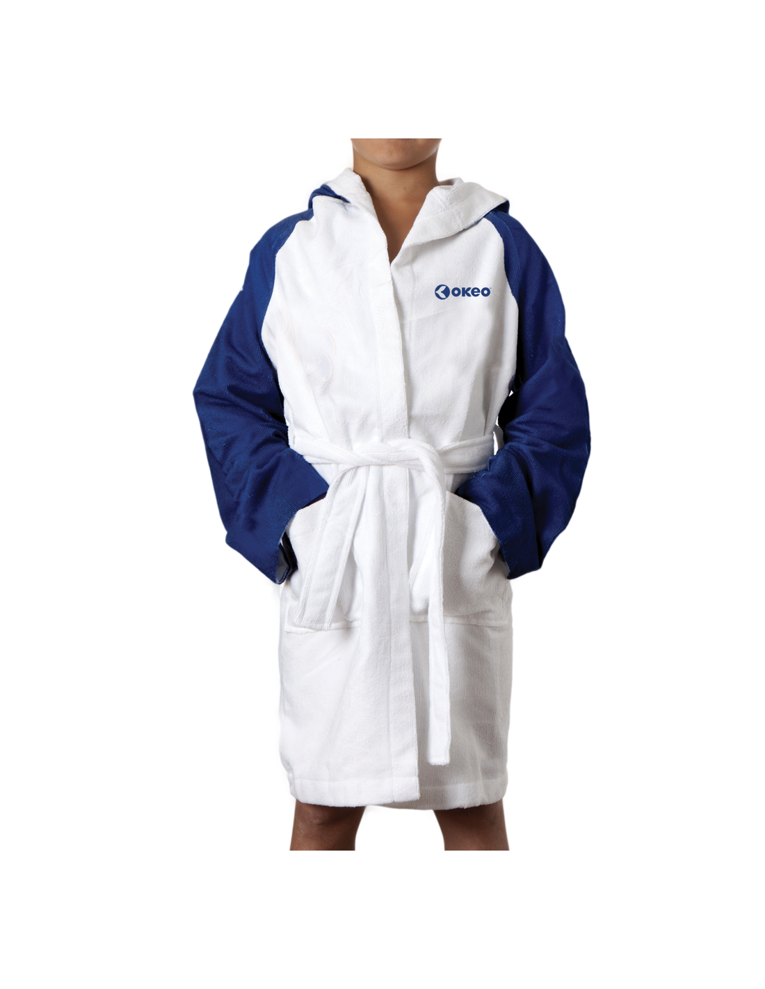 Produktcode: AC0101Der TROPICO ist ein weicher, hochwertiger Mikrofaser-Bademantel für Kinder, erhältlich in Blau und Weiß. Er ist schnelltrocknend, hat eine Kapuze und einen verstellbaren Bund und ist in zwei Größen erhältlich, passend zur Körpergröße Ihres Kindes.
