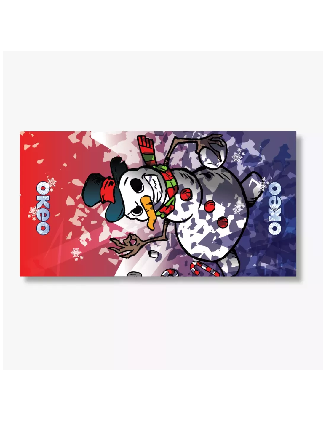 Das winterliche Schneemannmuster und die leuchtenden, kräftigen Farben machen dieses Accessoire einzigartig und perfekt geeignet, um selbst den kältesten Tagen einen Hauch von Energie zu verleihen.