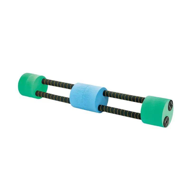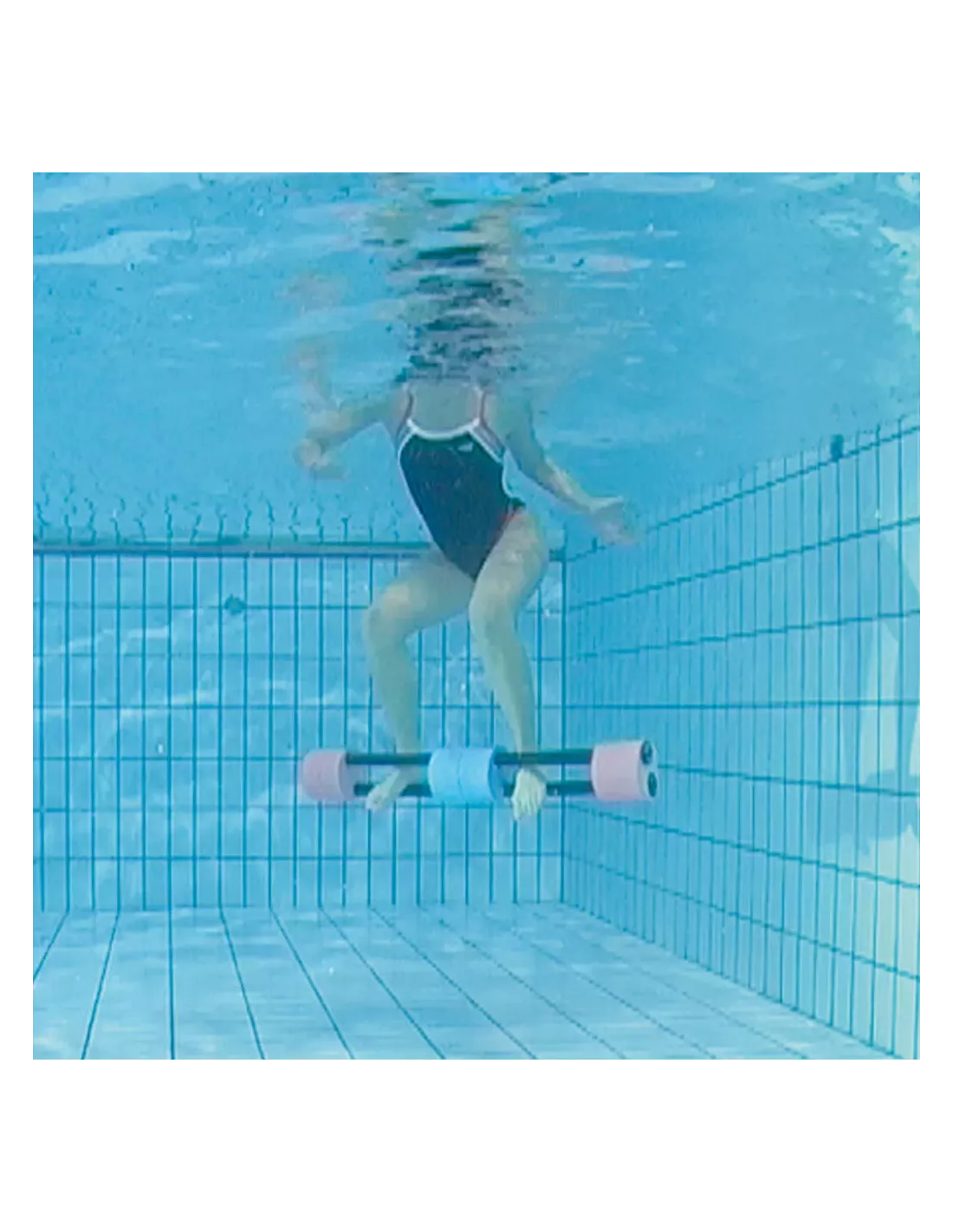 Entdecken Sie den WATERJUMP , das revolutionäre Wassertrainingsgerät für ein umfassendes und sicheres Workout, ideal für Übungen in Gewässern ab 150 cm Tiefe. Diese Doppelhantel (100 cm lang und 15 cm breit) ermöglicht Ihnen vielfältige Übungen zur Kräftigung von Ober- und Unterkörper, ohne die Wirbelsäule zu überlasten.