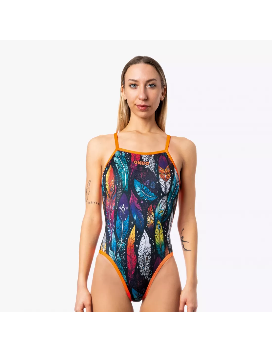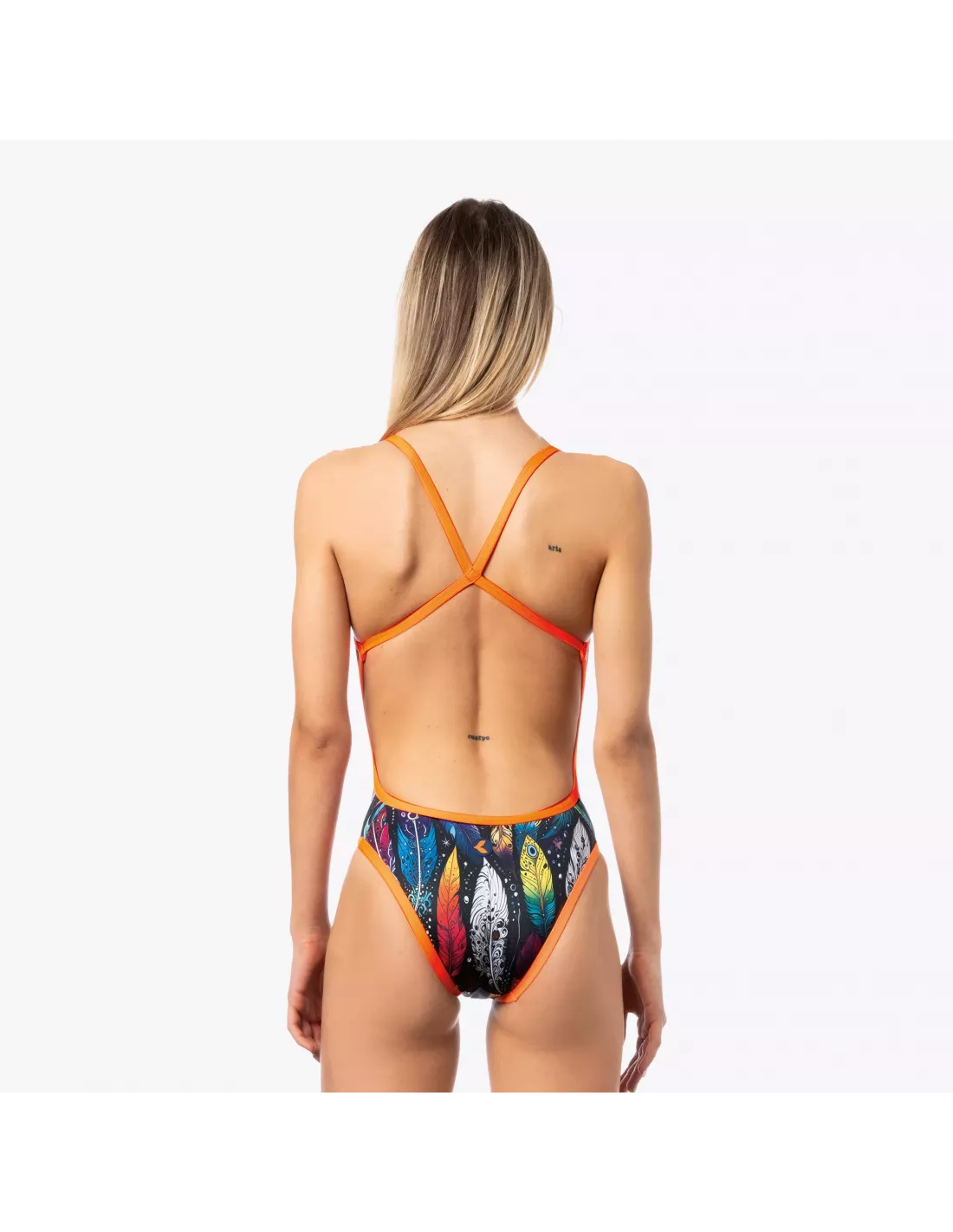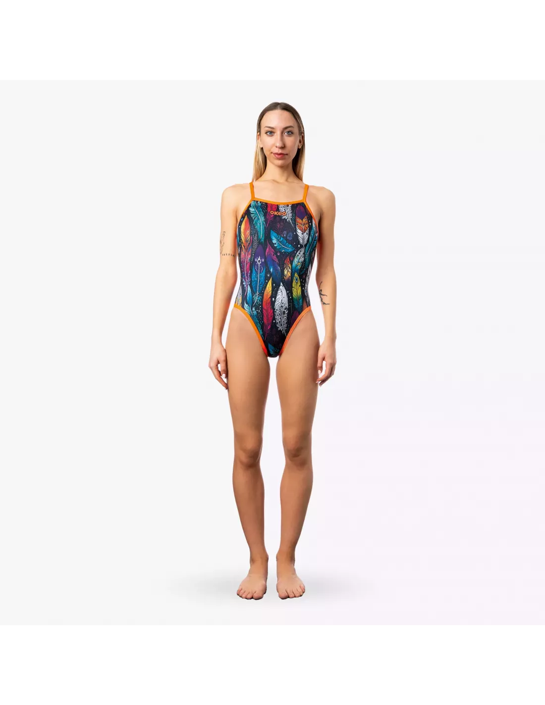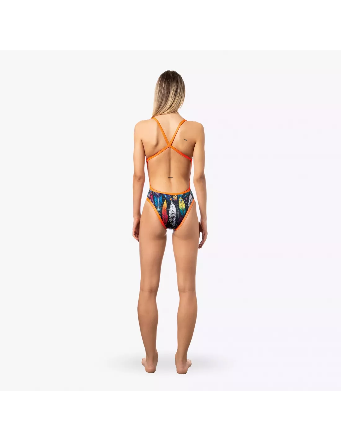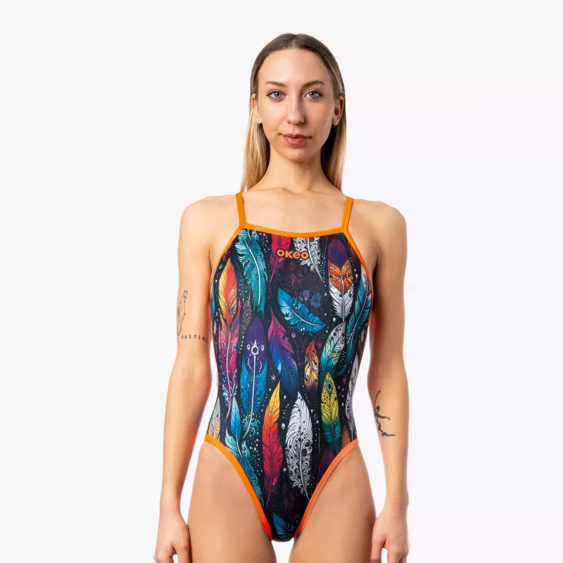 Entdecken Sie unseren Damen-Badeanzug YUMA, Modell TRAINING – perfekt für jeden Anlass, ob am Pool oder am Strand. Gefertigt aus dem innovativen Material X-PLAY, das für eine bequeme, strapazierfähige und superelastische Passform sorgt, begleitet er Sie stilvoll und komfortabel bei jeder Bewegung. Das Design besticht durch einen lebendigen Federprint mit orangefarbenen Akzenten, die dem Badeanzug einen Hauch von Energie und Frische verleihen.