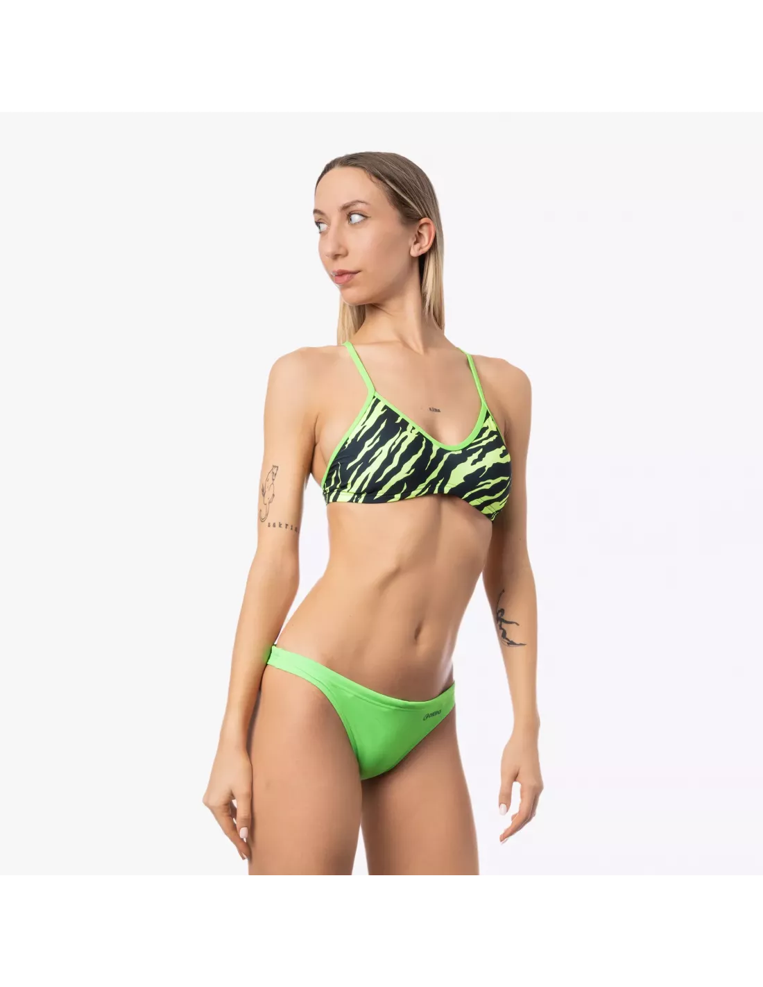 Der zweiteilige Badeanzug „BRASIL GREEN“ ist perfekt für alle, die am Pool Wert auf Stil und Komfort legen. Dieses Modell besticht durch sein einzigartiges Design: Das Oberteil mit seinem leuchtend grünen Tigerprint verleiht dem Look eine dynamische Note, während das einfarbig grüne Höschen zeitlose Eleganz garantiert.