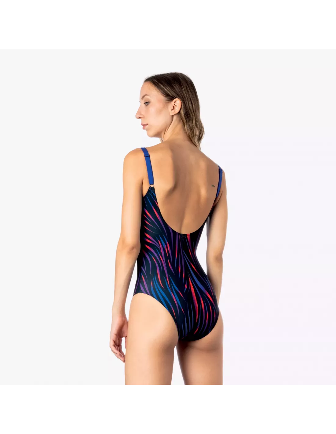 The purple design enhances feminine lines, while the wide straps ensure stability during water activities. The LADY model is shaping and ideal for plus sizes , offering support thanks to the removable cups and internal lining for greater security and comfort.