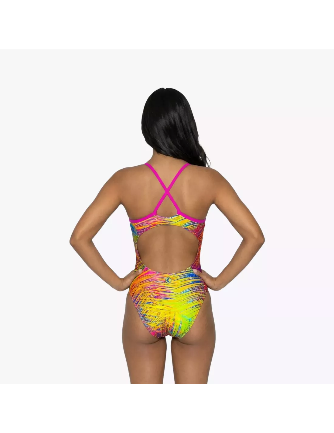 Brighten up every swim with ARCOIRIS , the one-piece swimsuit designed to combine style and performance. The colorful pastel print creates a fresh, delicate, and feminine look, enhanced by the narrow pink straps for an elegant and sporty touch.