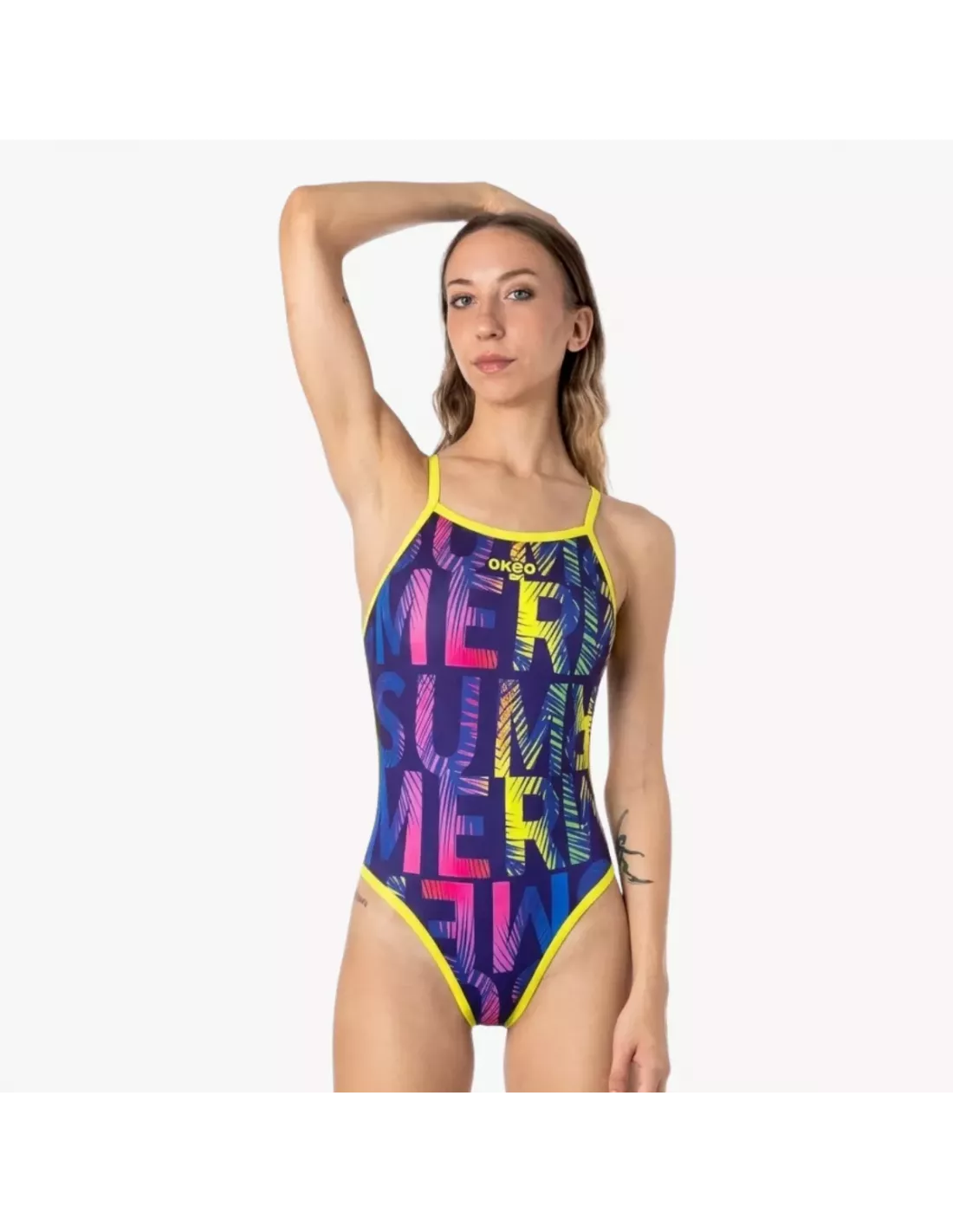 Ignite your energy with ASMAR , the one-piece swimsuit that blends grit and performance in a bold , contemporary design. The lively and dynamic Miami Vibes pattern evokes sunny atmospheres and intense colors , for a magnetic and distinctive look, perfect for those who love to stand out even on the dance floor with a bold yet refined style.