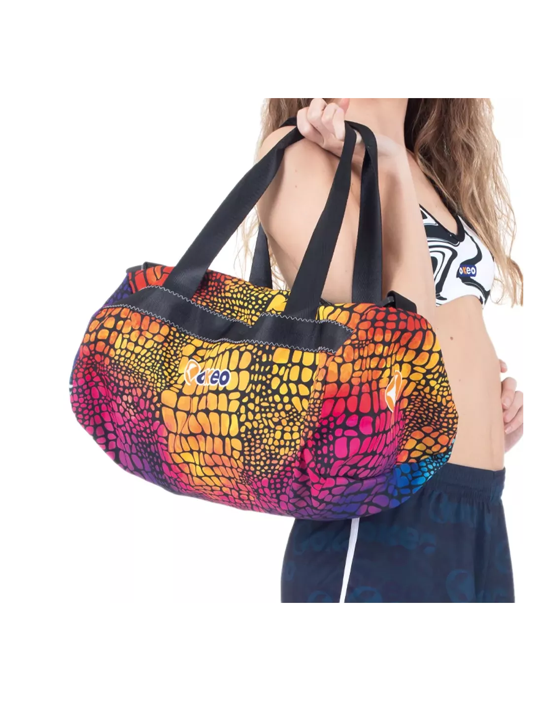 The GARDEN women's two-piece swimsuit combines style and comfort with its colorful leaf pattern on a white background. Made from Revolutional Shiro fabric, it offers a push-up effect, removable cups, and a perfect fit.