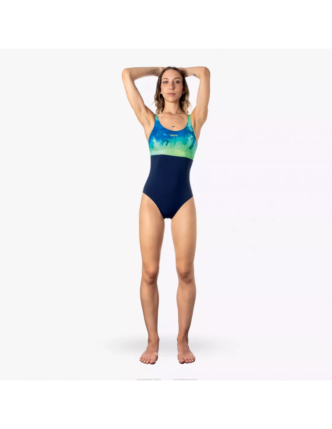 Elegance and comfort meet in the INSEL one-piece swimsuit, designed to accompany you during every pool workout or your wellness swim. The green and blue pattern, embellished with a navy blue insert, gives a fresh and refined touch, ideal for those seeking style even in the water.