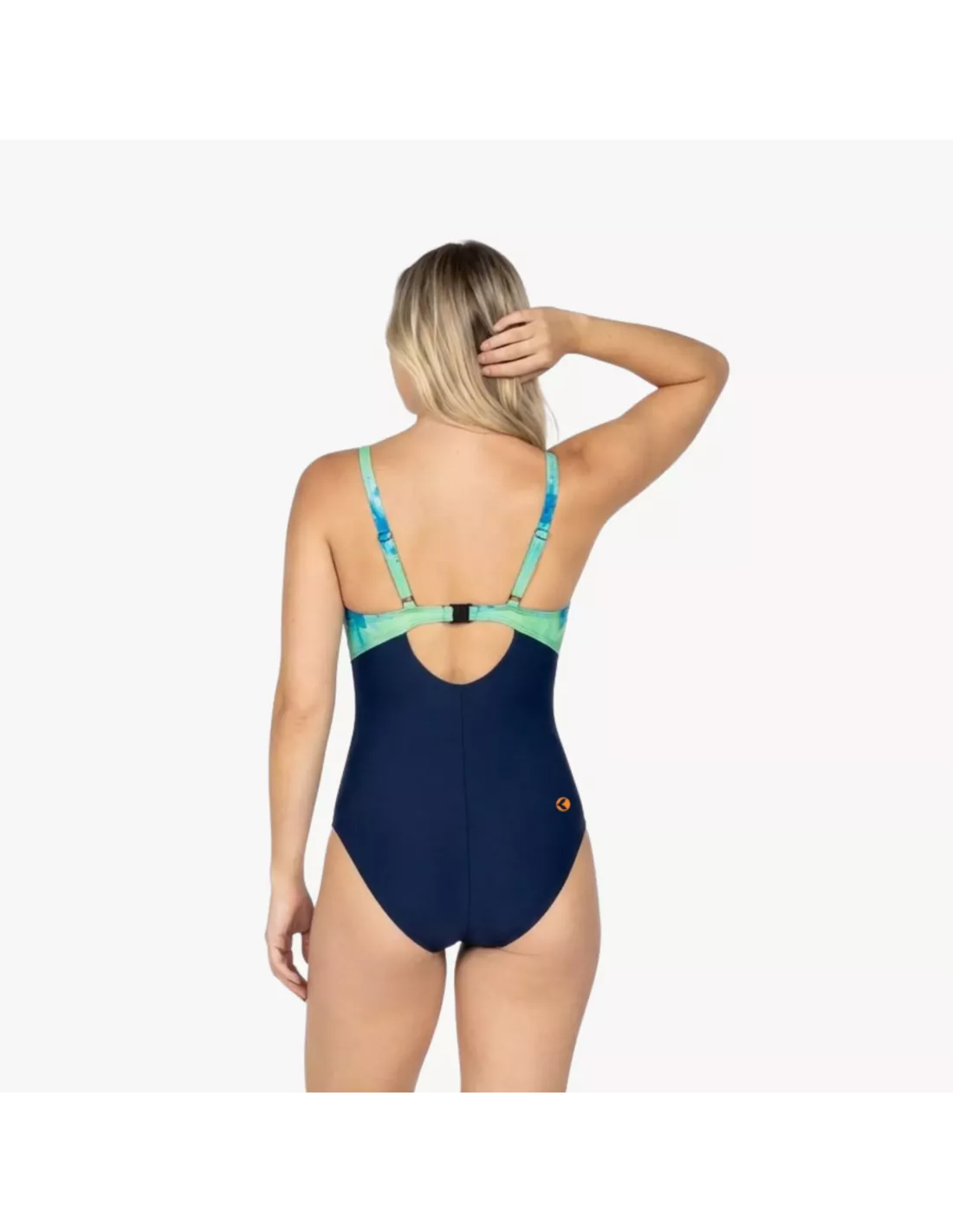 Elegance and comfort meet in the INSEL one-piece swimsuit, designed to accompany you during every pool workout or your wellness swim. The green and blue pattern, embellished with a navy blue insert, gives a fresh and refined touch, ideal for those seeking style even in the water.