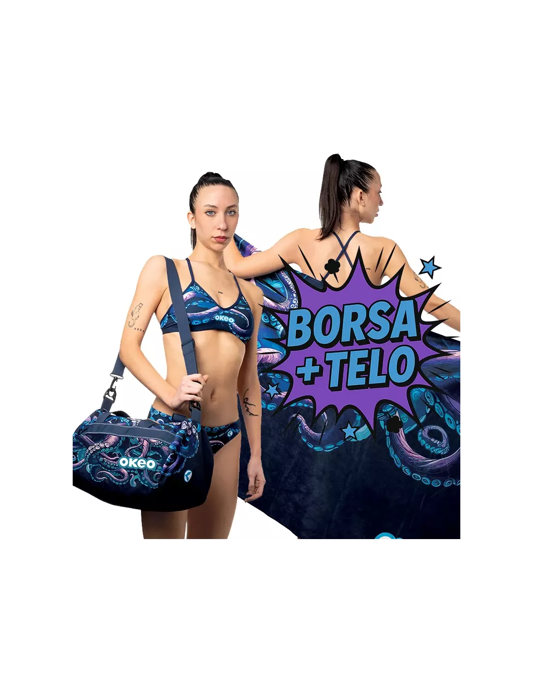 Codice prodotto:Activity bag and 90x150 cm Kraken-print beach towel kit, perfect for summer. Practical, durable, and stylish, it's designed for your days at the beach or pool.