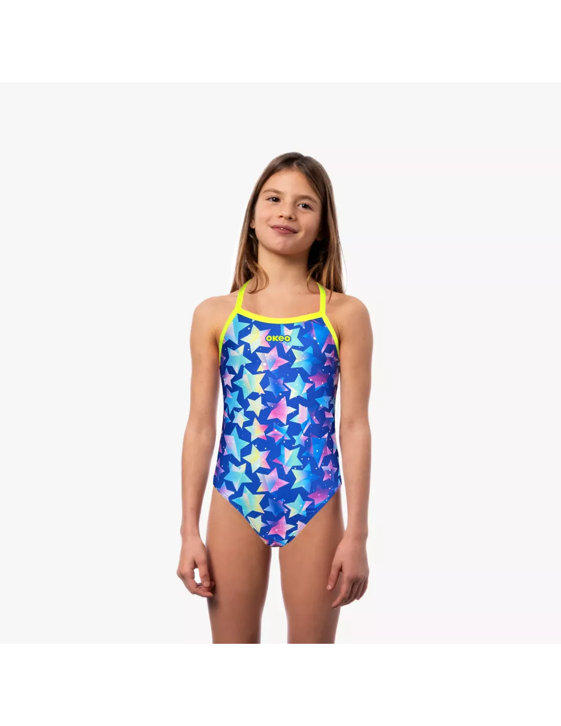 Product code: A6001GThe LULU one-piece swimsuit with a star pattern on a blue background is perfect for accompanying the little ones between games and fun in the water.