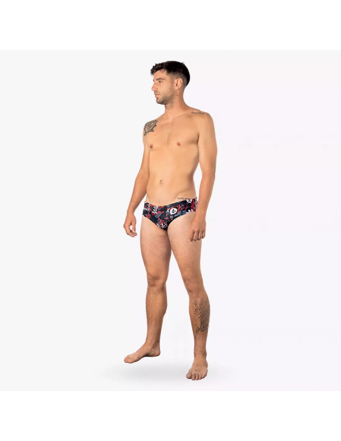 The CANTON men's shorty swimsuit combines style and comfort with its red Japanese pattern on a dark background. Made from Sidney Eco fabric , it is durable, lightweight, and quick-drying.